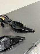 AIMÉE SLINGBACK PUMPS IN BLACK GLOSSY LAMBSKIN