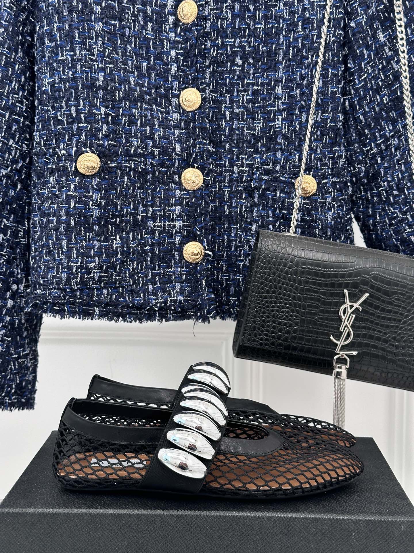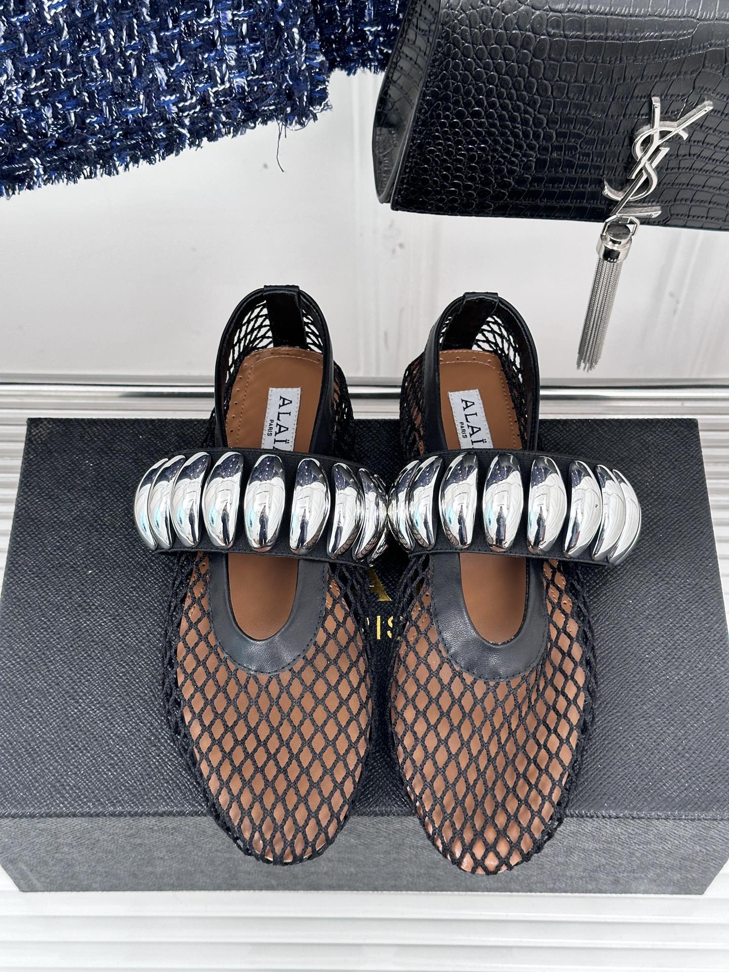Alaia 25 Mary Jane Mesh Ballet Flats Black Calfskin 293248