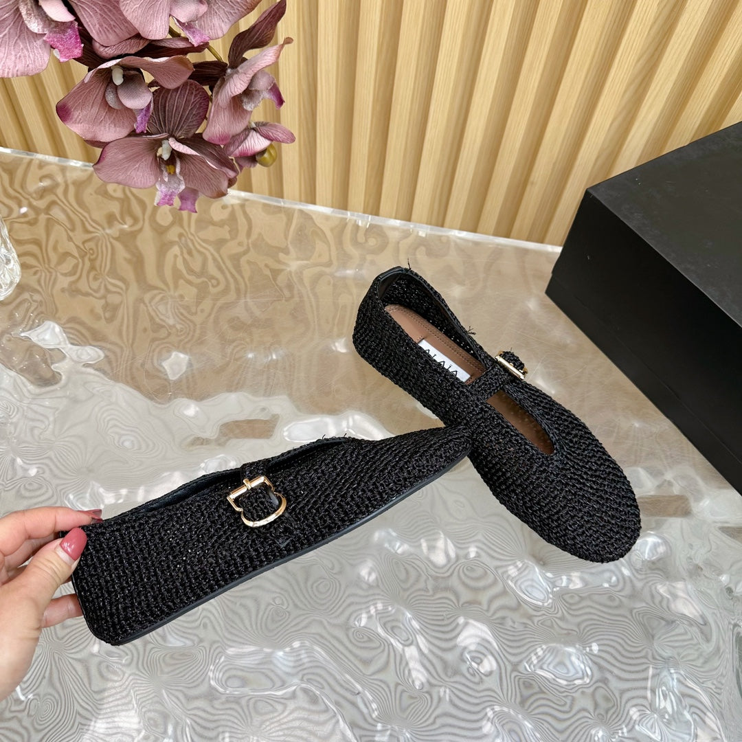 Alaia Ballet Flats In Black Stretch Woven Sedge 102276