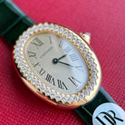 Baignoire 23mm Pink Gold Case Diamond Bezel Dark Green Leather Strap