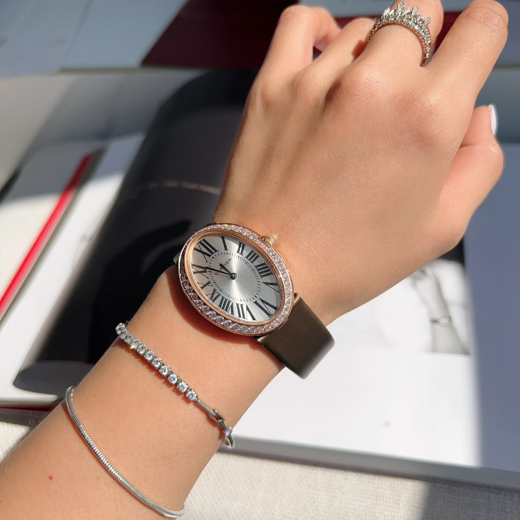 Baignoire 28mm Pink Gold Diamond Case Black Silk Leather