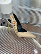 BALMAIN 25S SLINGBACK SHOES 95MM IN LIGHT BROWN CALFSKIN