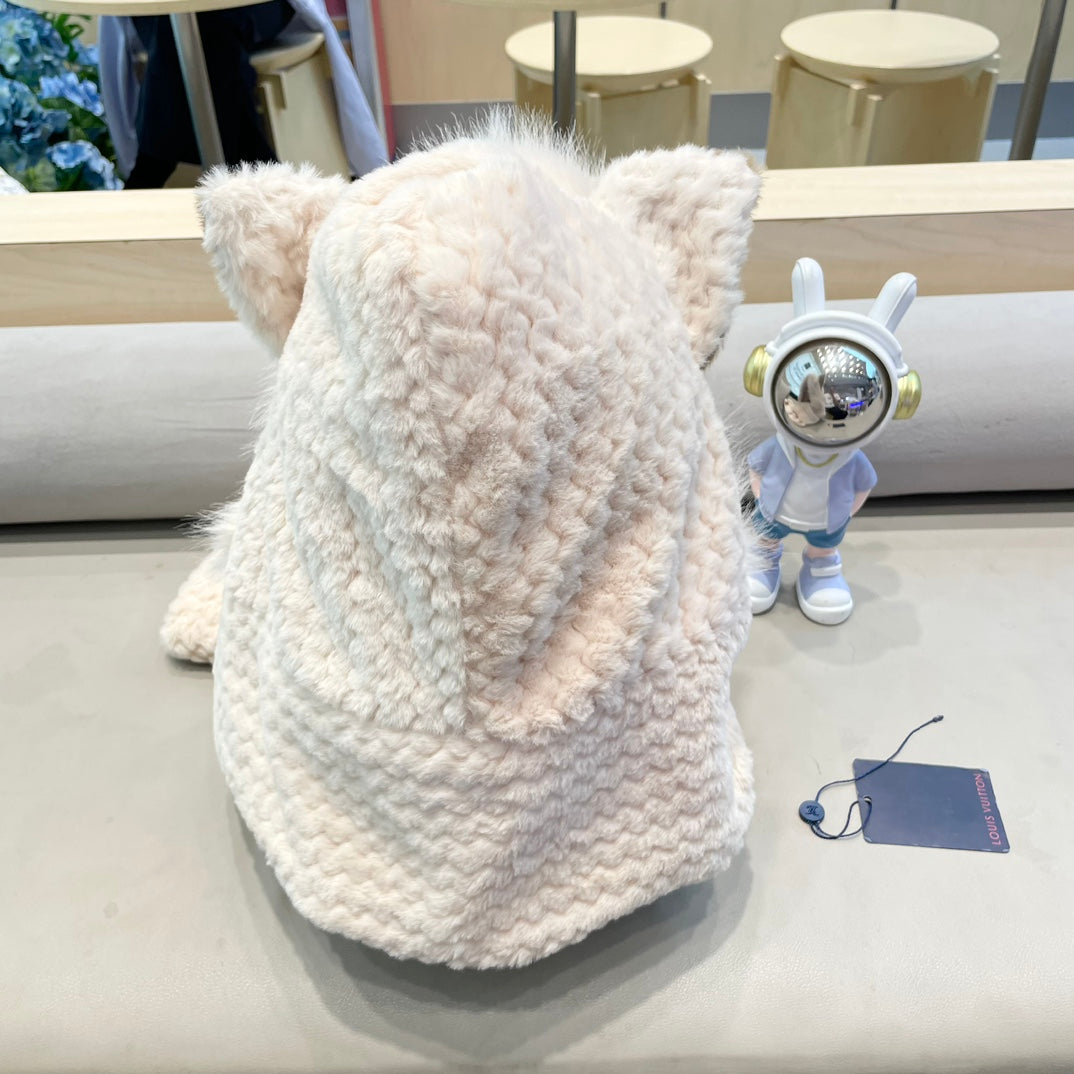 BEANIE HAT IN ALMOND BEIGE WOOL AND LAMB FUR 435075