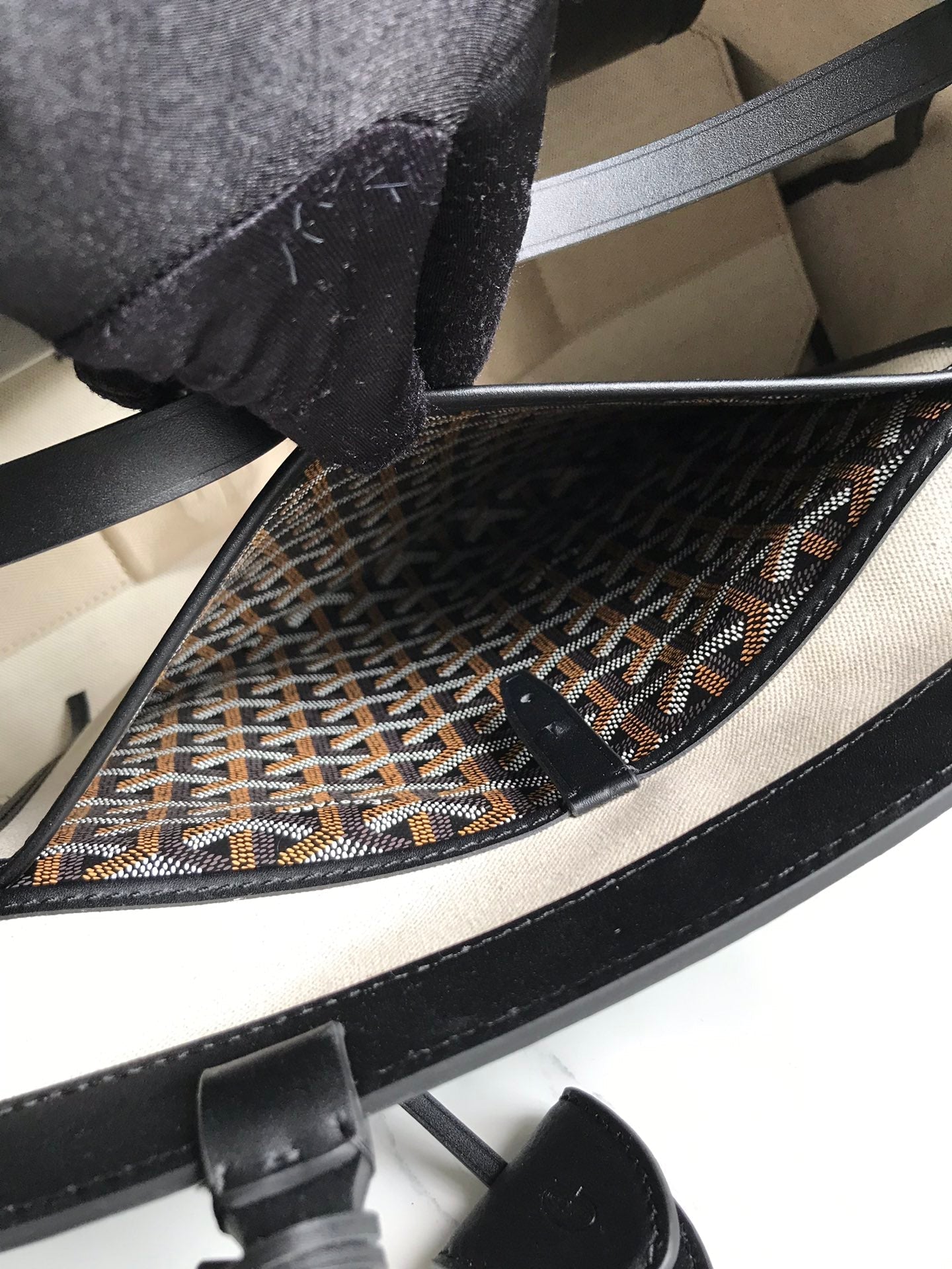 BELLECHASSE BIAUDE PM BAG 36 IN BLACK GOYARDINE CANVAS AND CALFSKIN TRIM