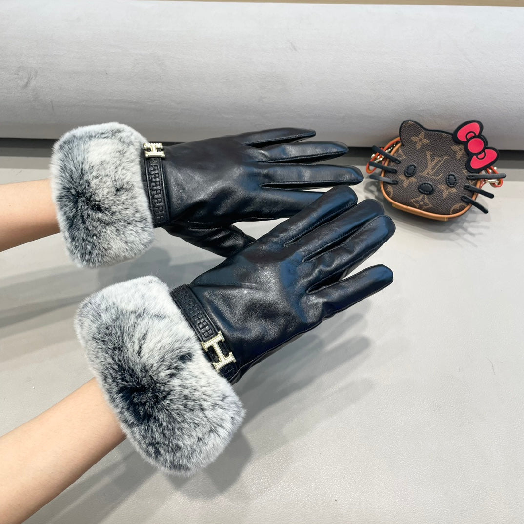 BIG H RABBIT FUR AND LAMBSKIN GLOVES BLACK 353541