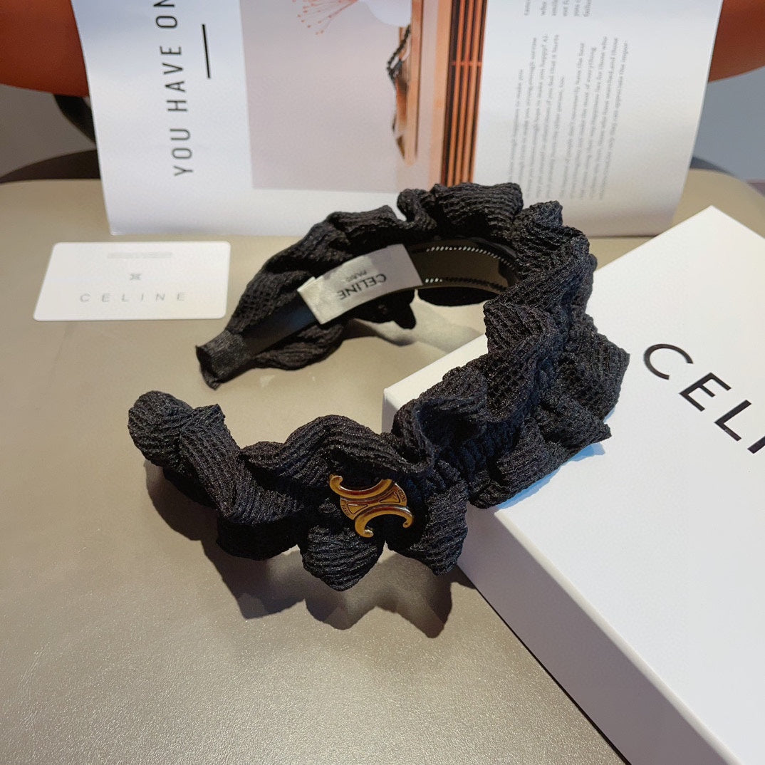 BLACK FABRIC WITH GOLD LOGO HAIRBAND 420627