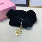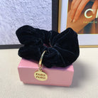BLACK VELVET SCRUNCHIE ATTACHED GOLD TAG LOGO 136818