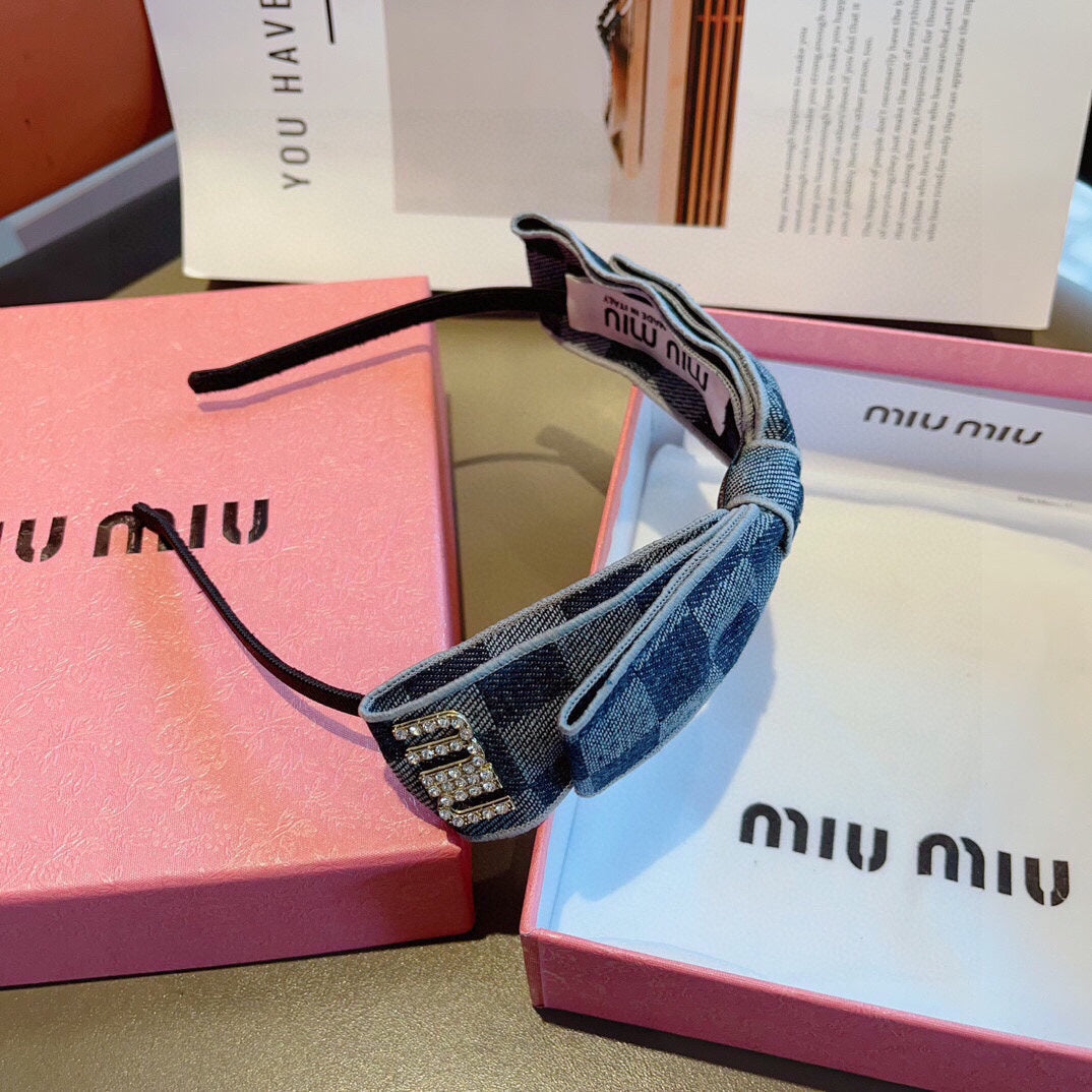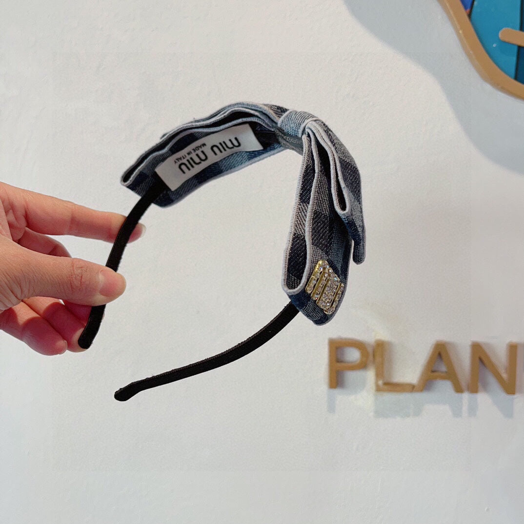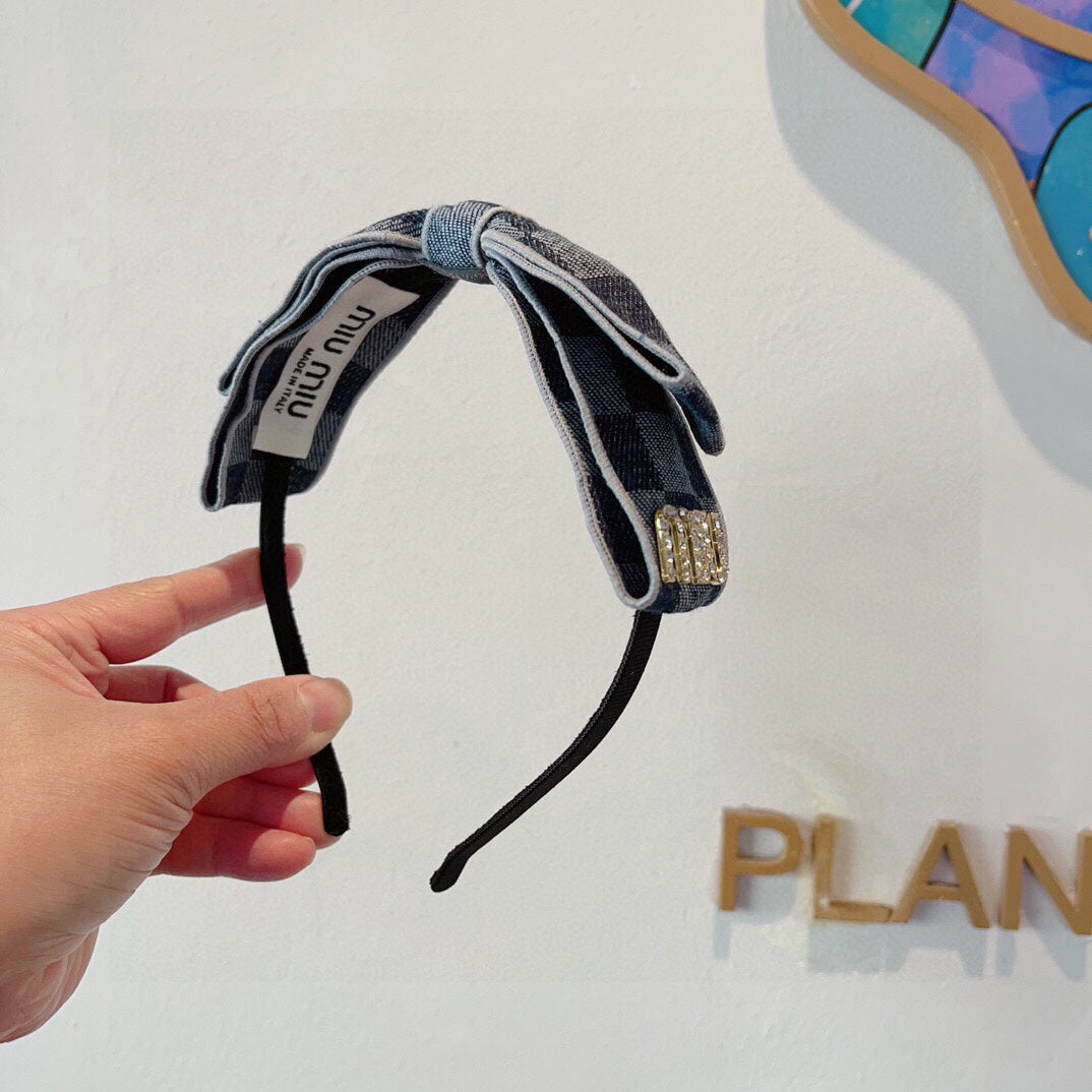 BOW HEADBAND IN BLUE DAMIER DENIM 398855