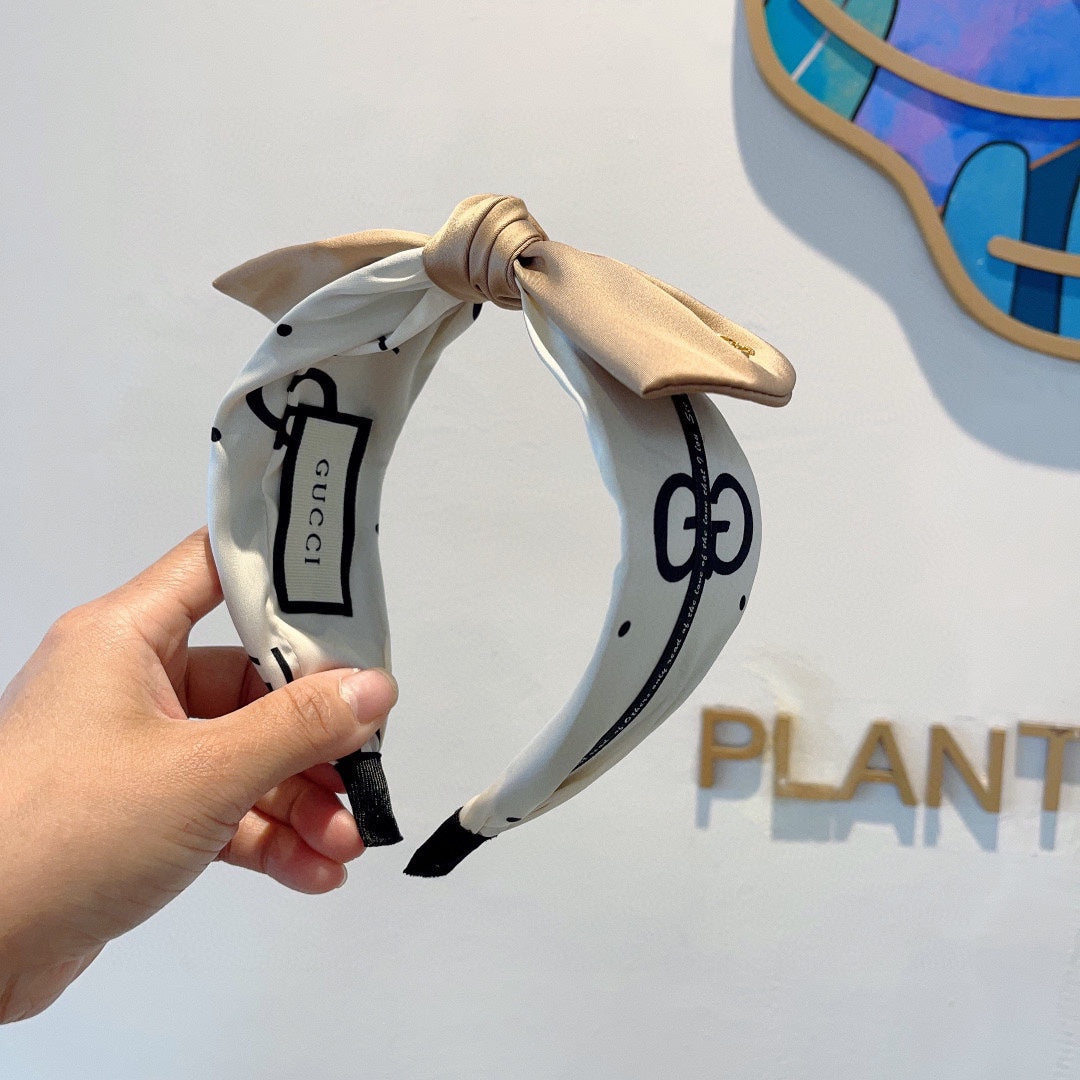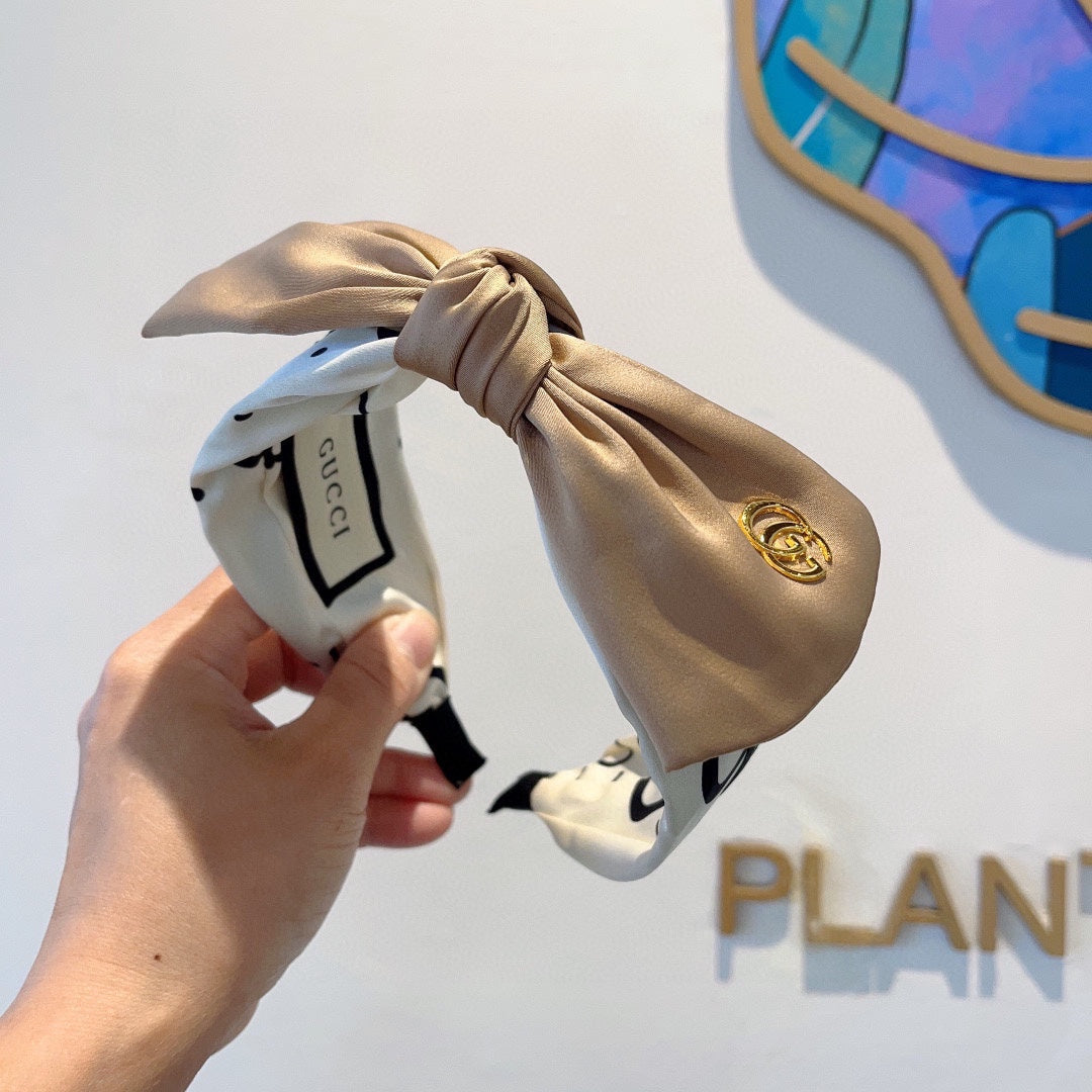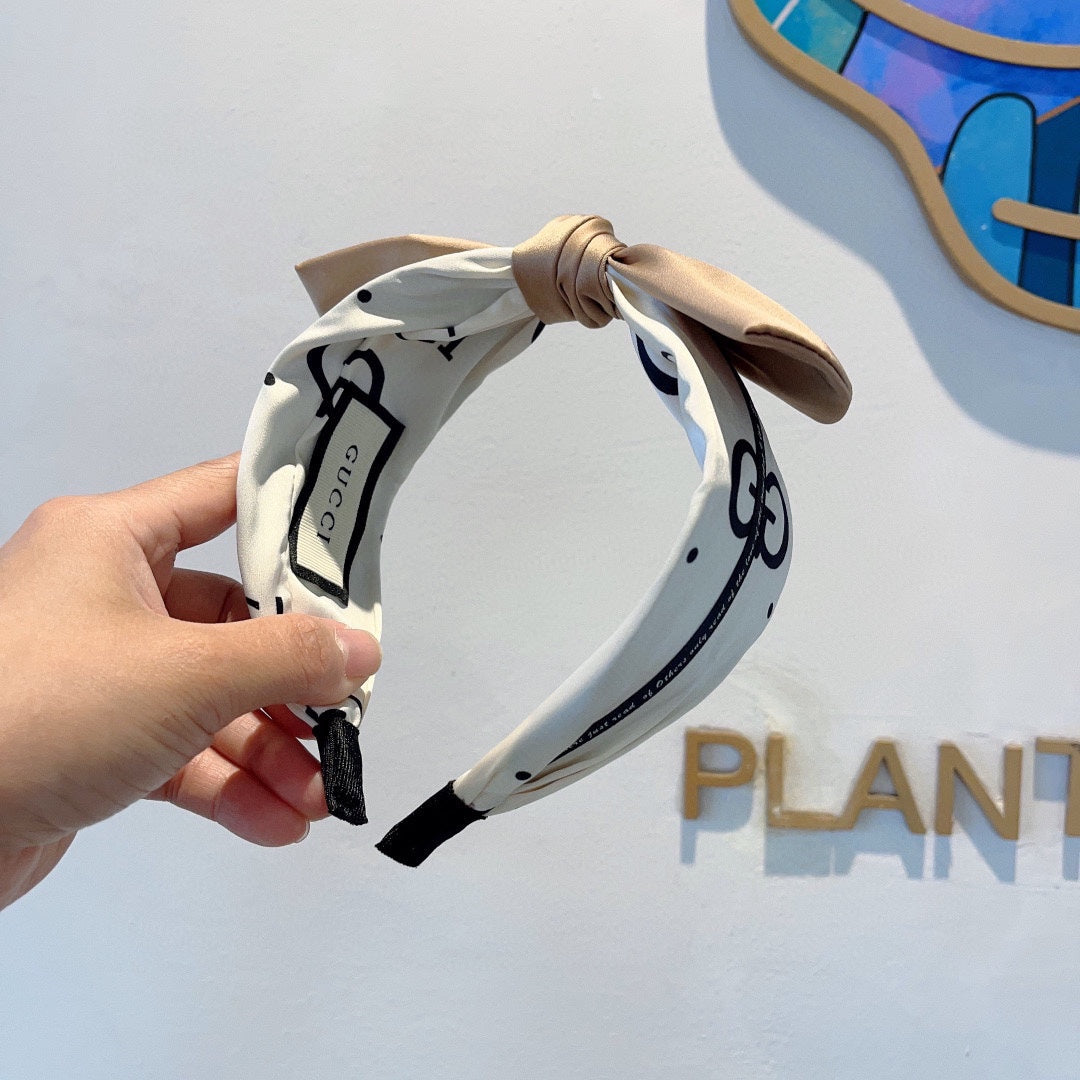 BOW HEADBAND IN WHITE COTTON AND LIGHT BROWN SILK 418893