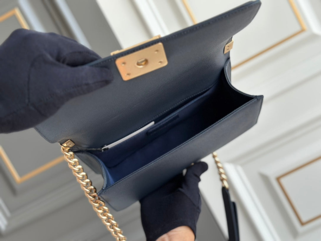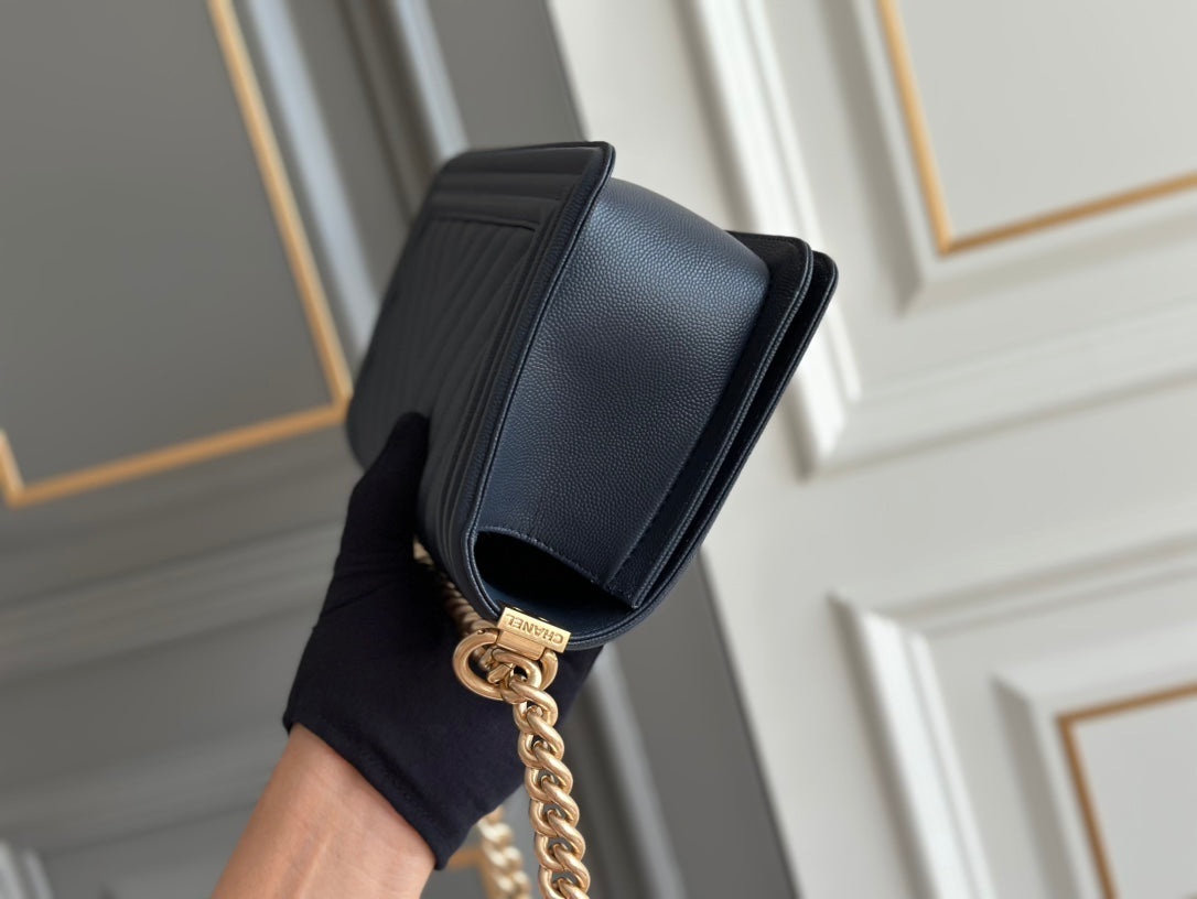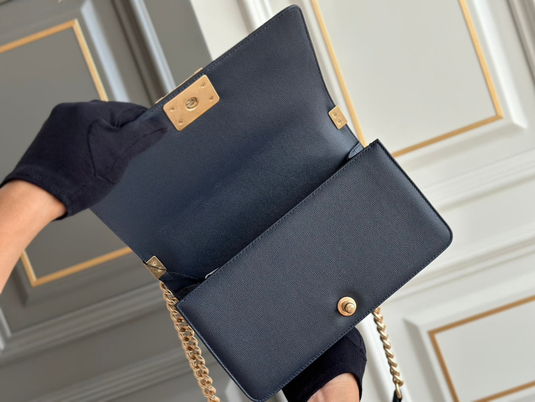 boy medium 25 dark blue chevron caviar aged ghw