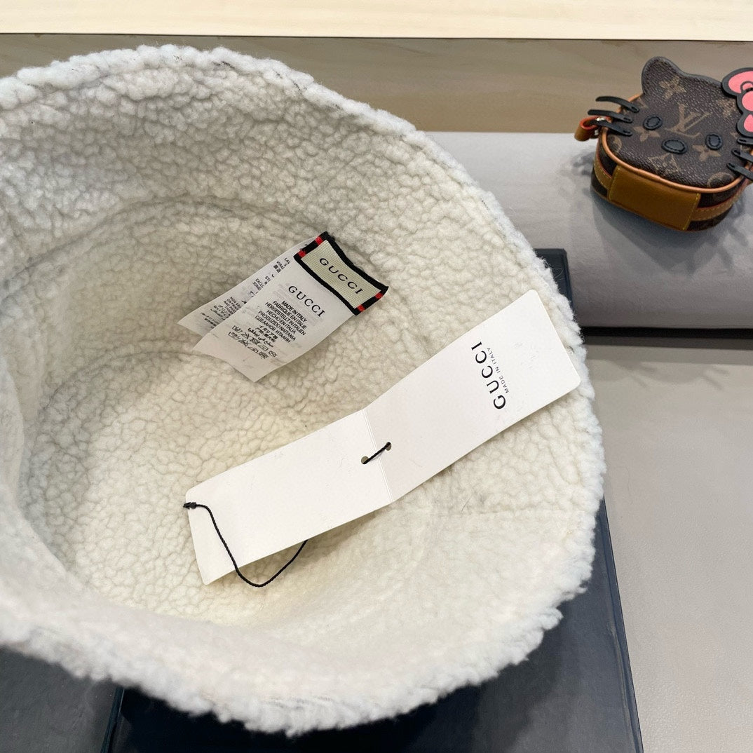 BUCKET HAT IN BLACK LAMBSKIN AND WHITE FLEECE 426223