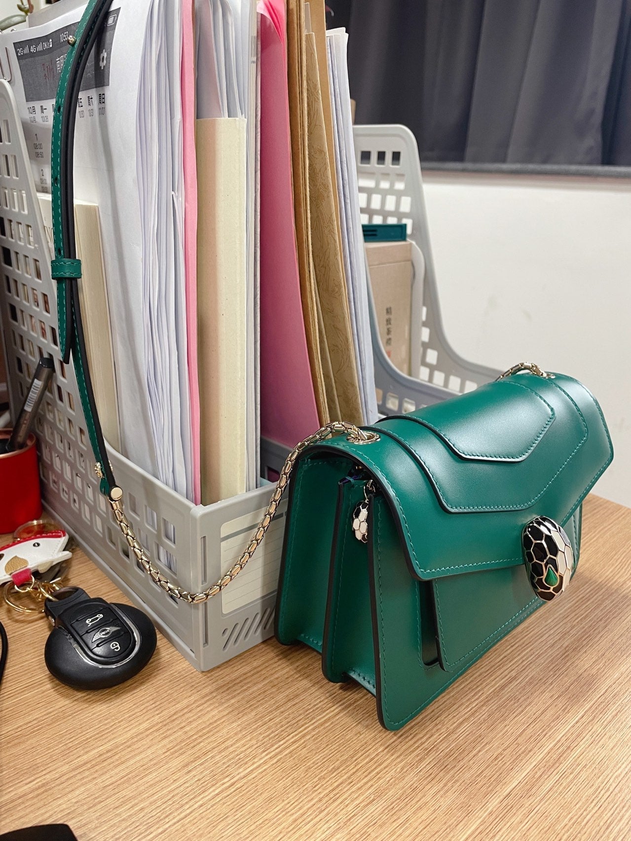 BVL Serpenti Forever Shoulder Bag 19cm Green Cowhide GHW 188643