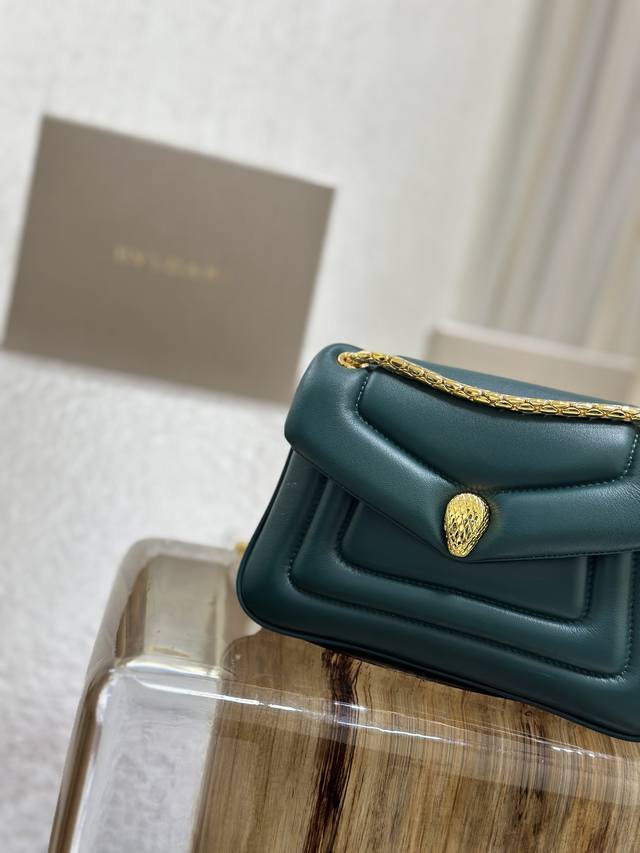 BVL Serpenti Reverse Shoulder Bag 22.5cm Emerald Green Calfskin GHW 188589