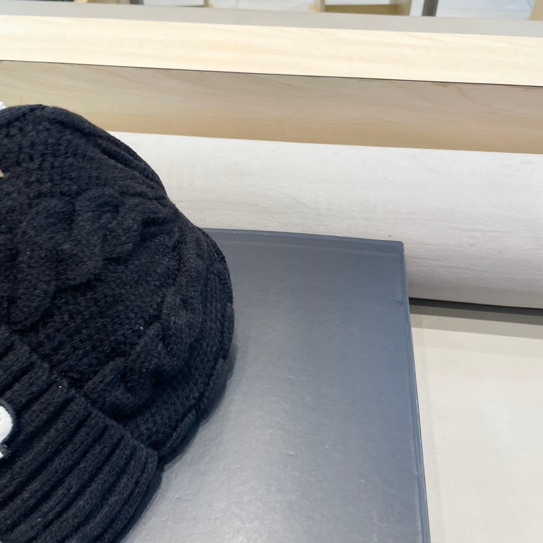 CABLE-KNIT BEANIE HAT IN BLACK WOOL 438140