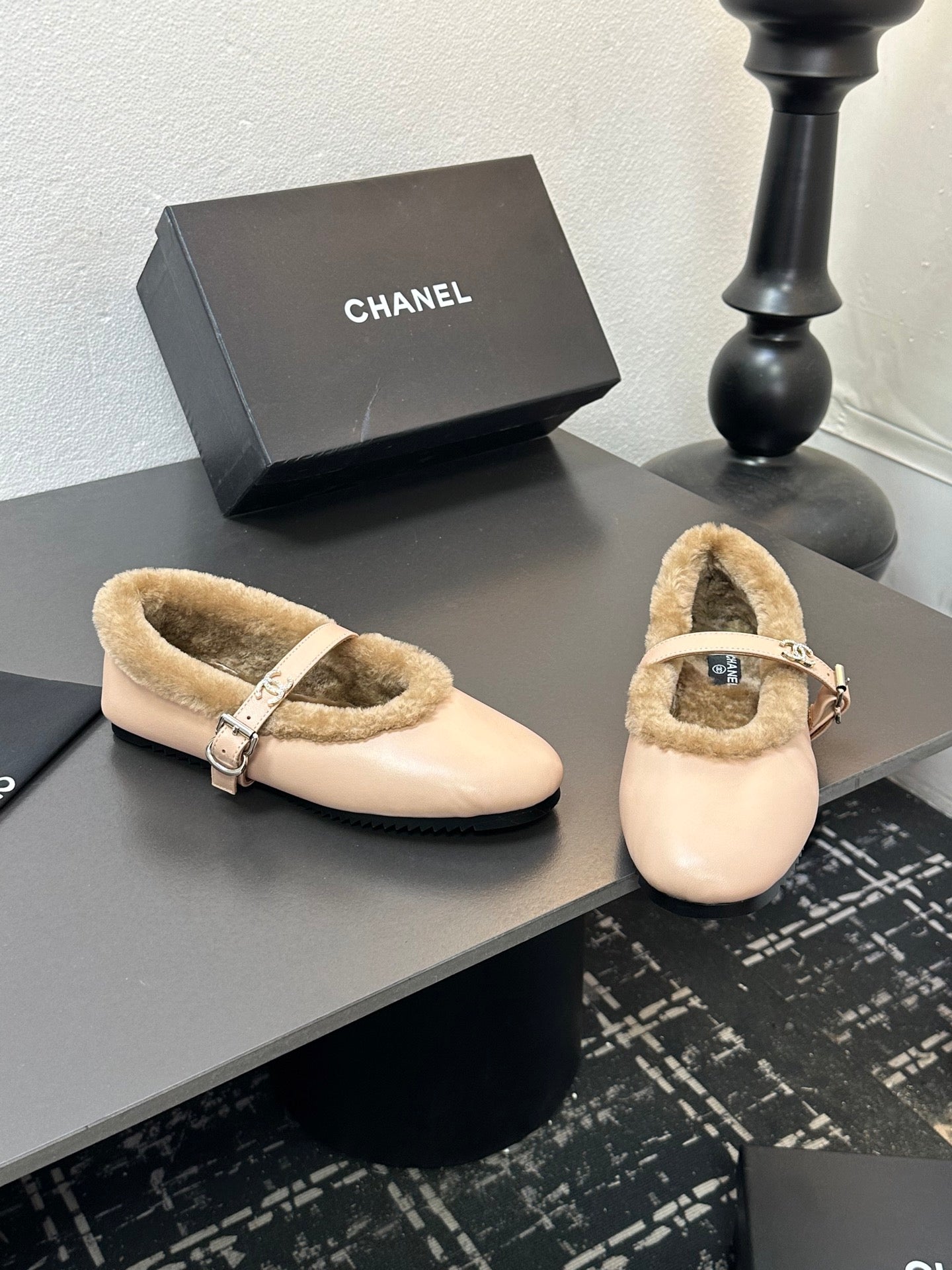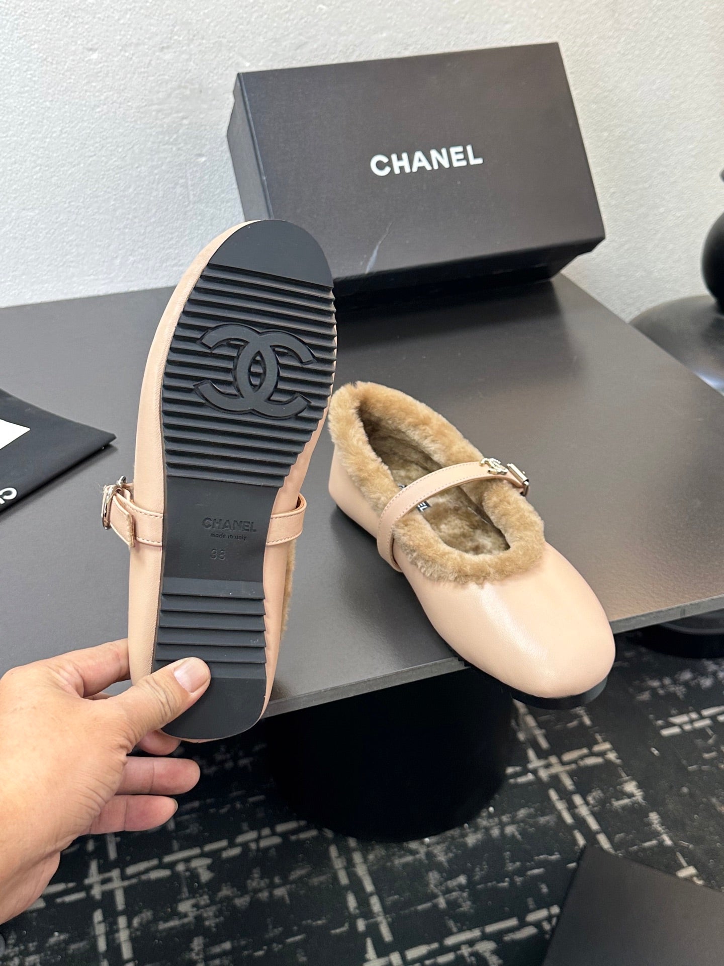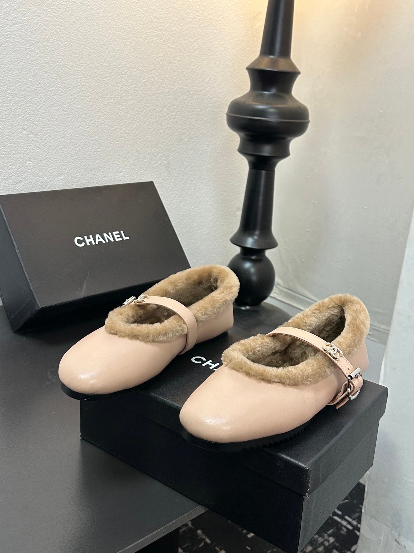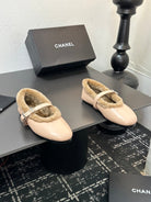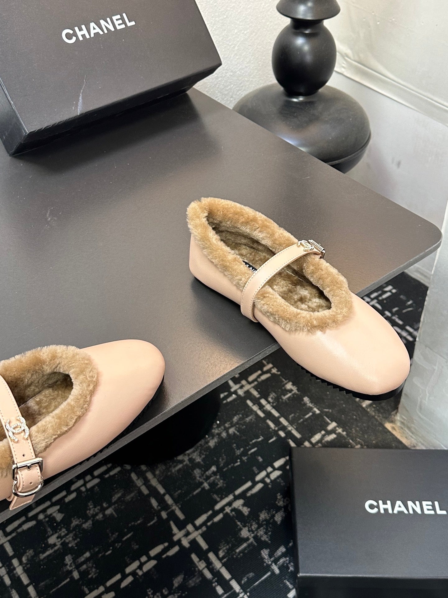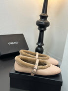 CC 2025 Puffer Ballet Flat With Strap Beige Sheepskin Fur 529344