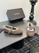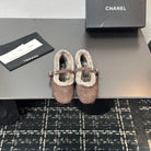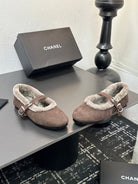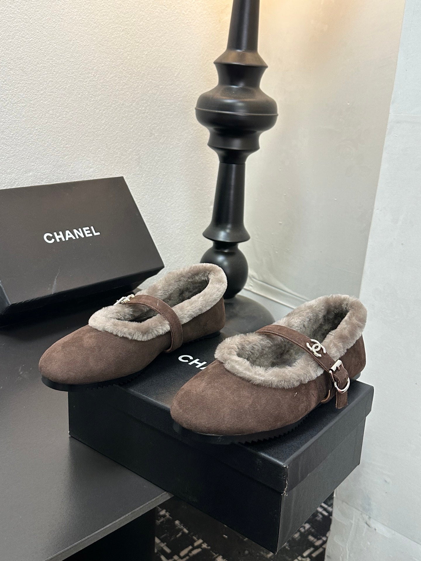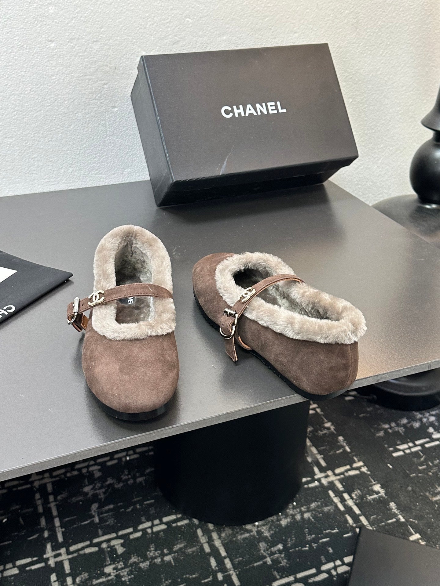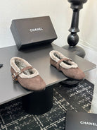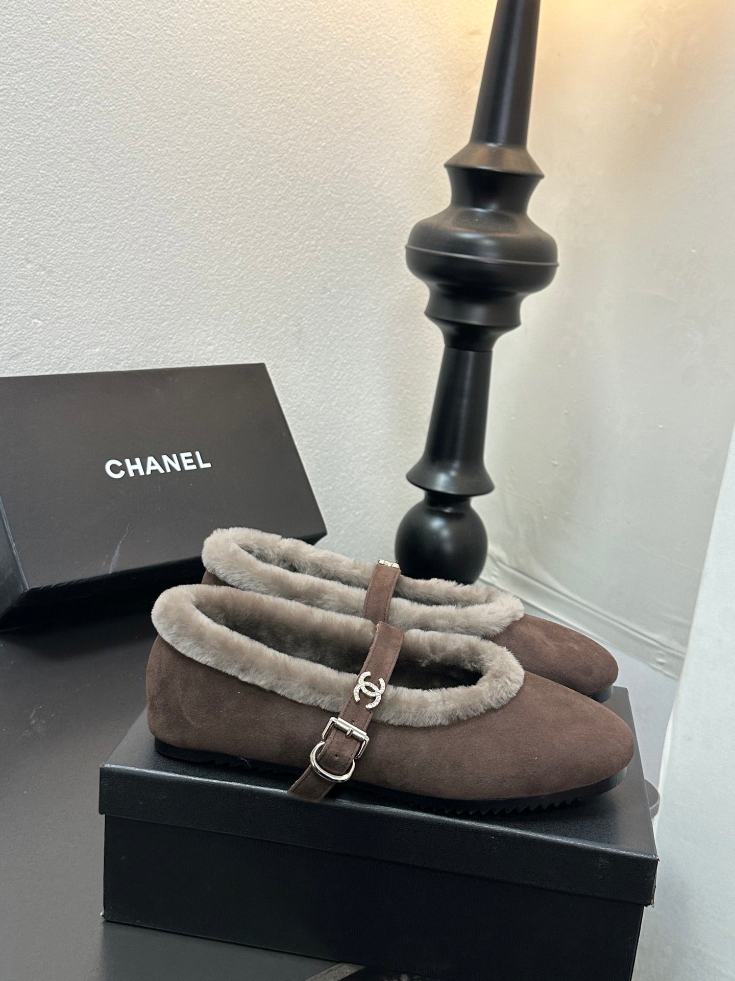 CC 2025 Puffer Ballet Flat With Strap Dark Coffee Sheepskin Fur 529345