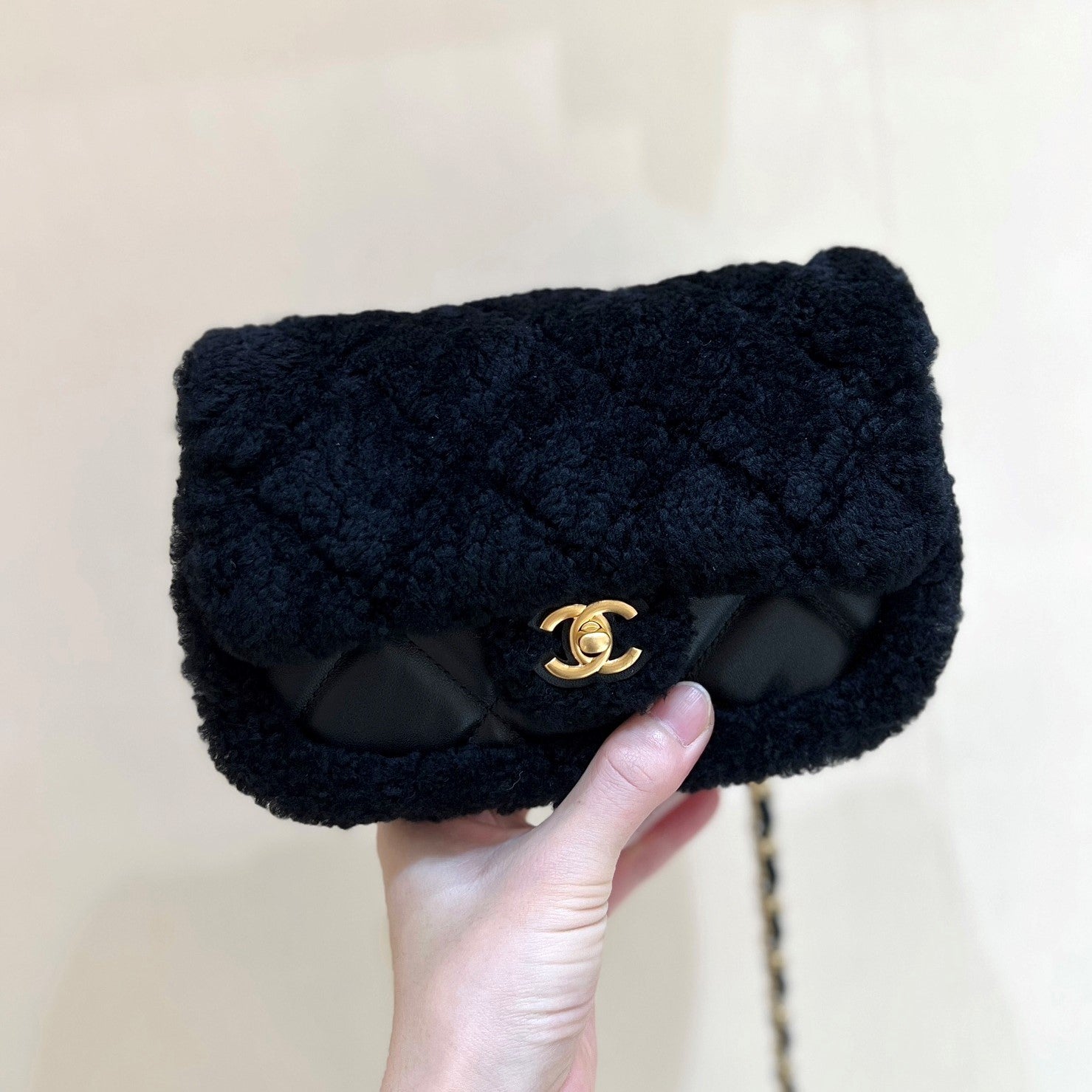 CC 24K Teddy Bear CF 18 cm Black Lambskin & Fur Light GHW