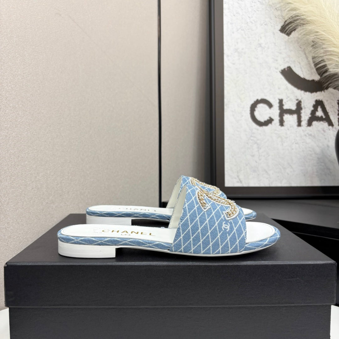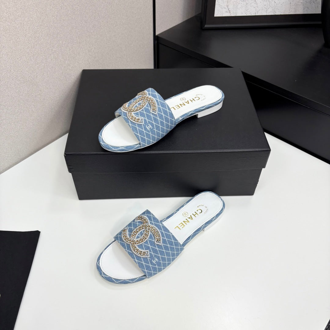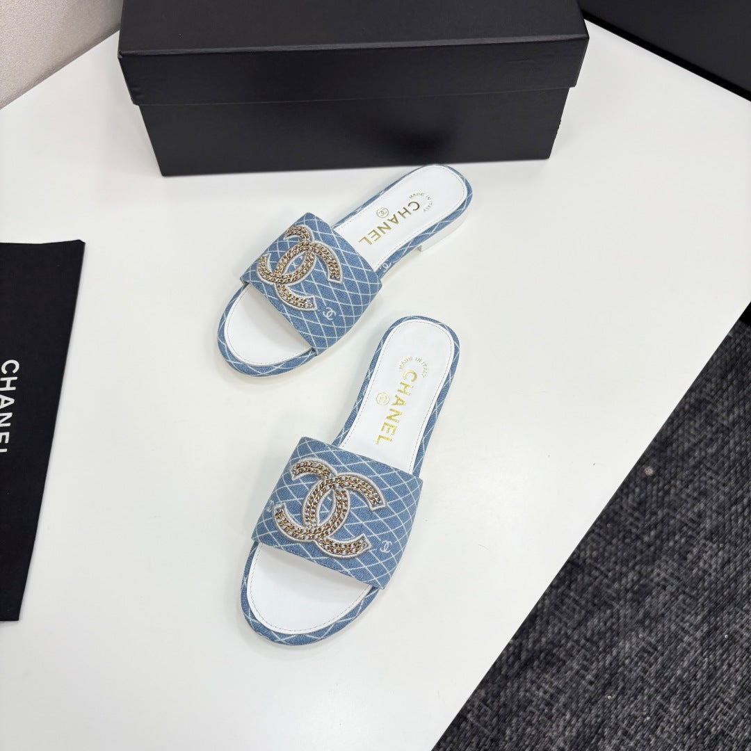 CC 25 Doubble Chain Embroidered Slippers Light Blue Fabric 352497