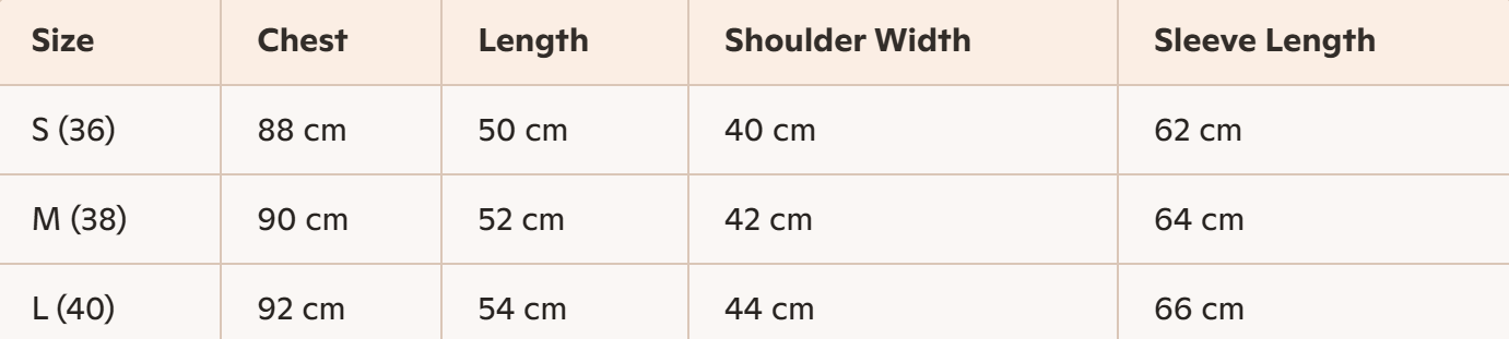 - For more information, please see the size guide below