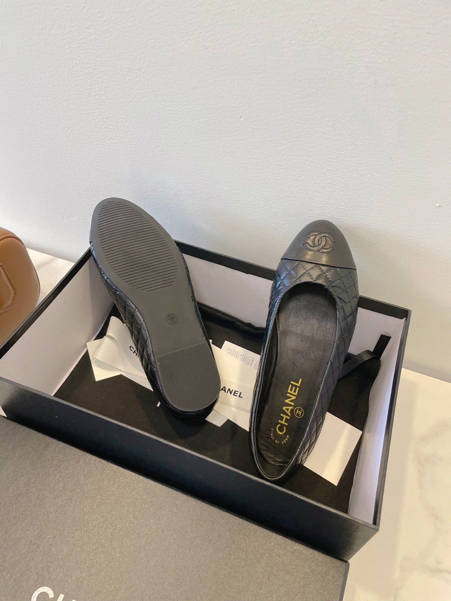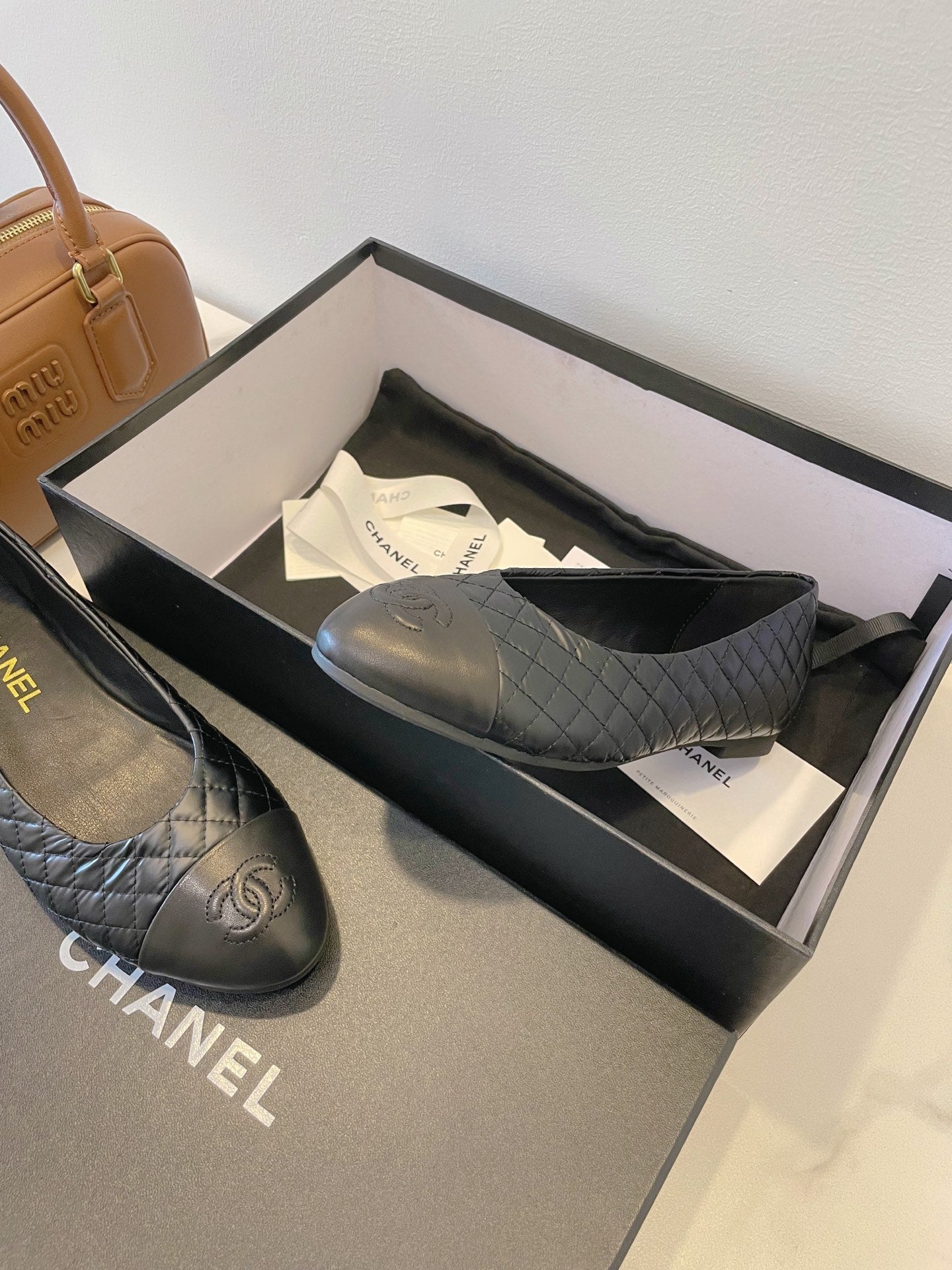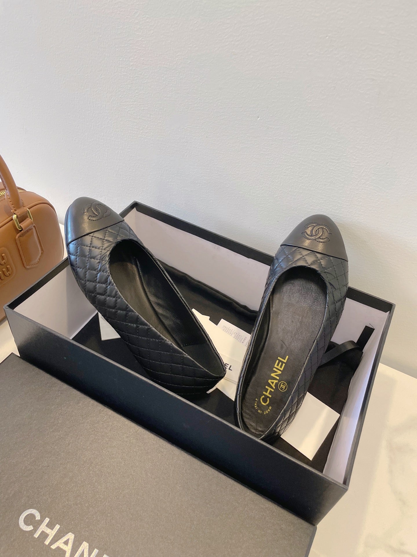 CC 25A Ballet Flat Quited Black Sheepskin 530541