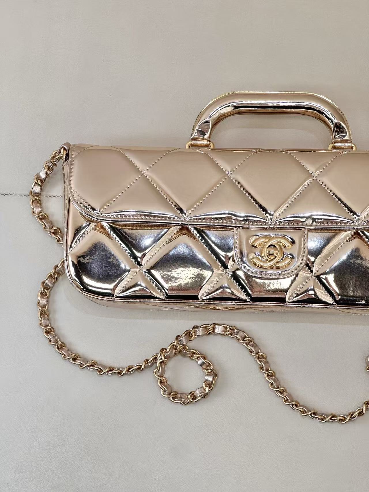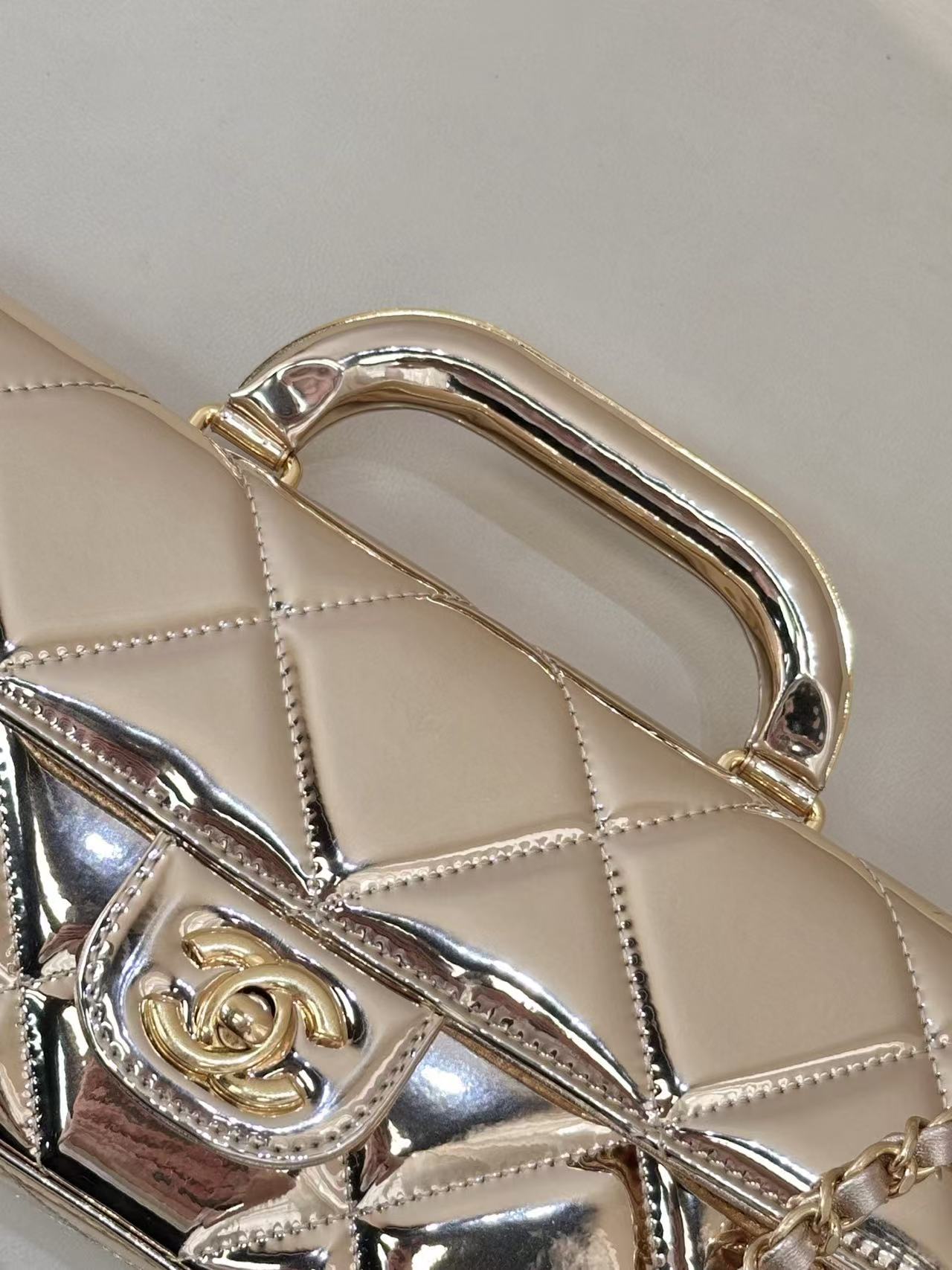 CC 25K Large Flap Bag with Top Handle Chain Strap Gold Metalic Patent Calfskin GHW