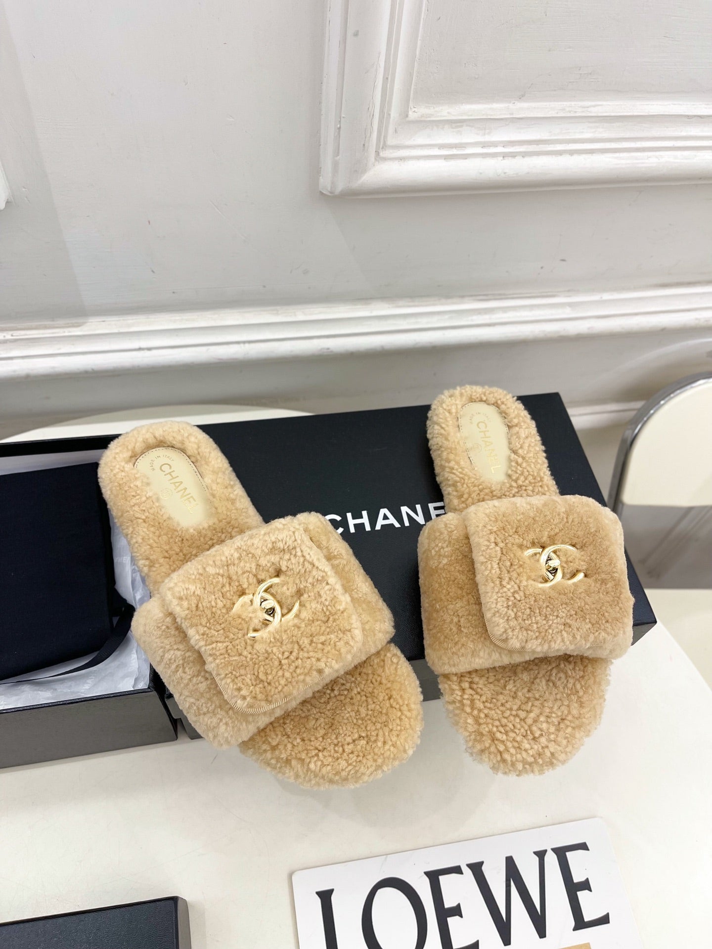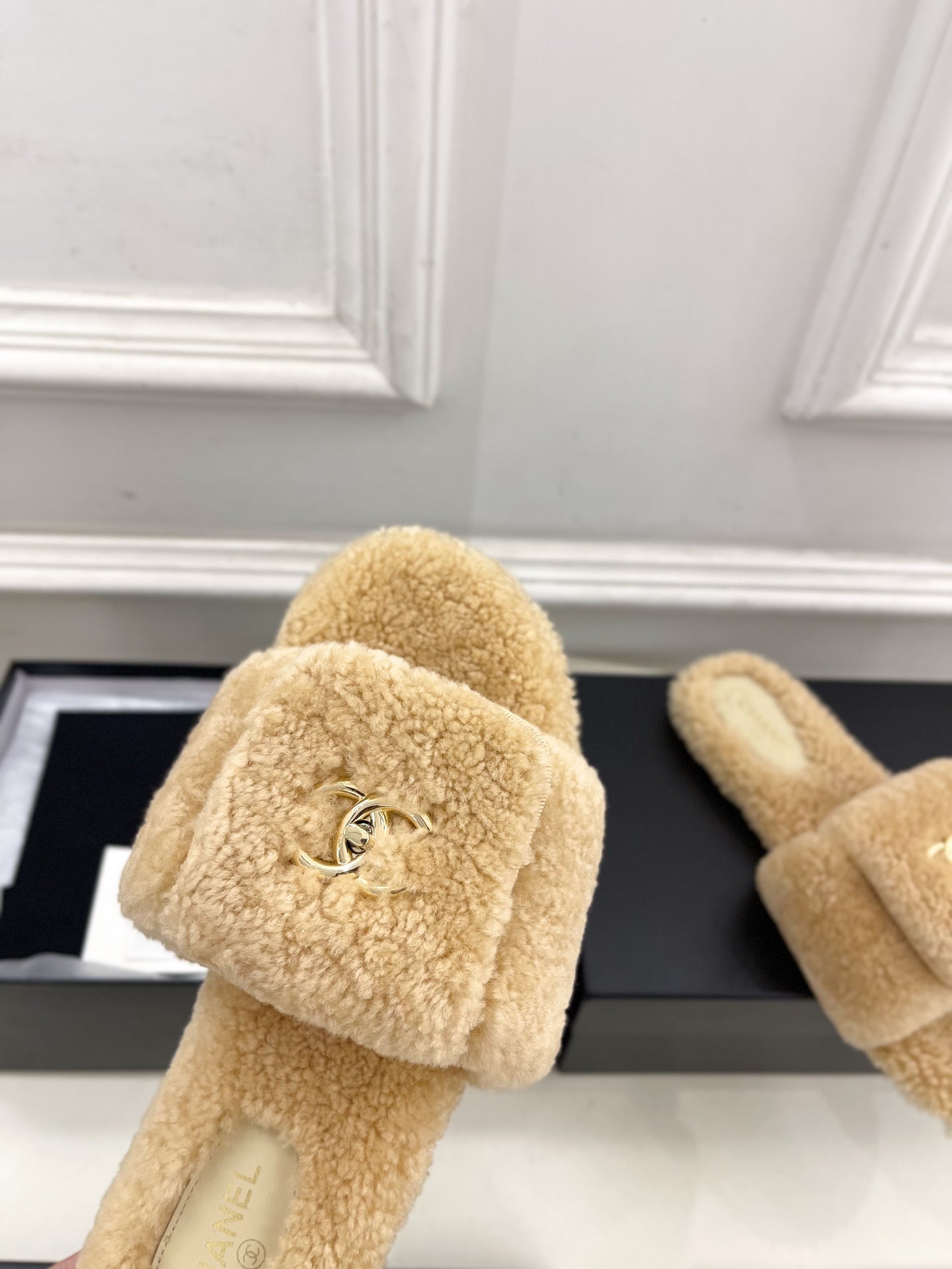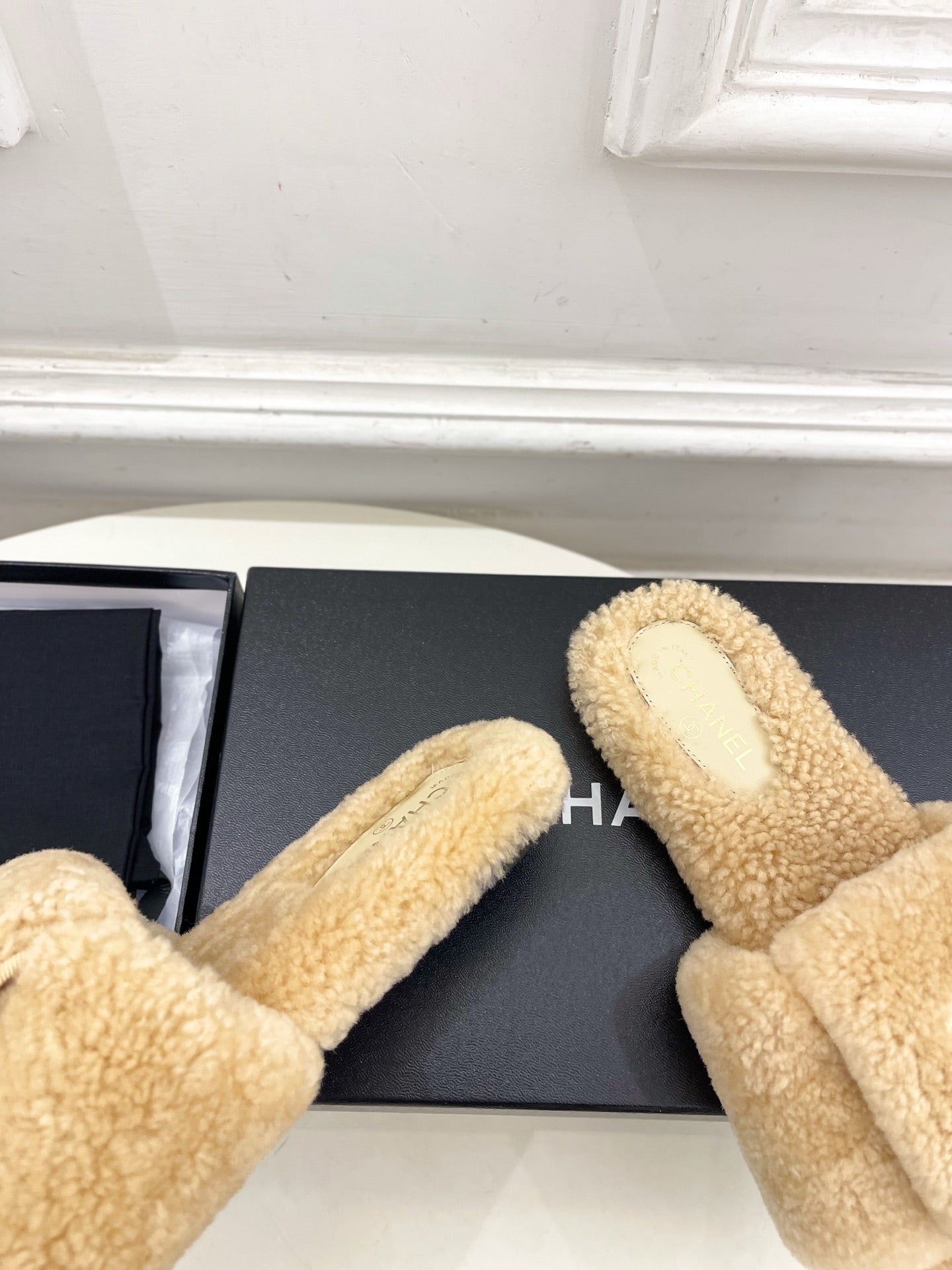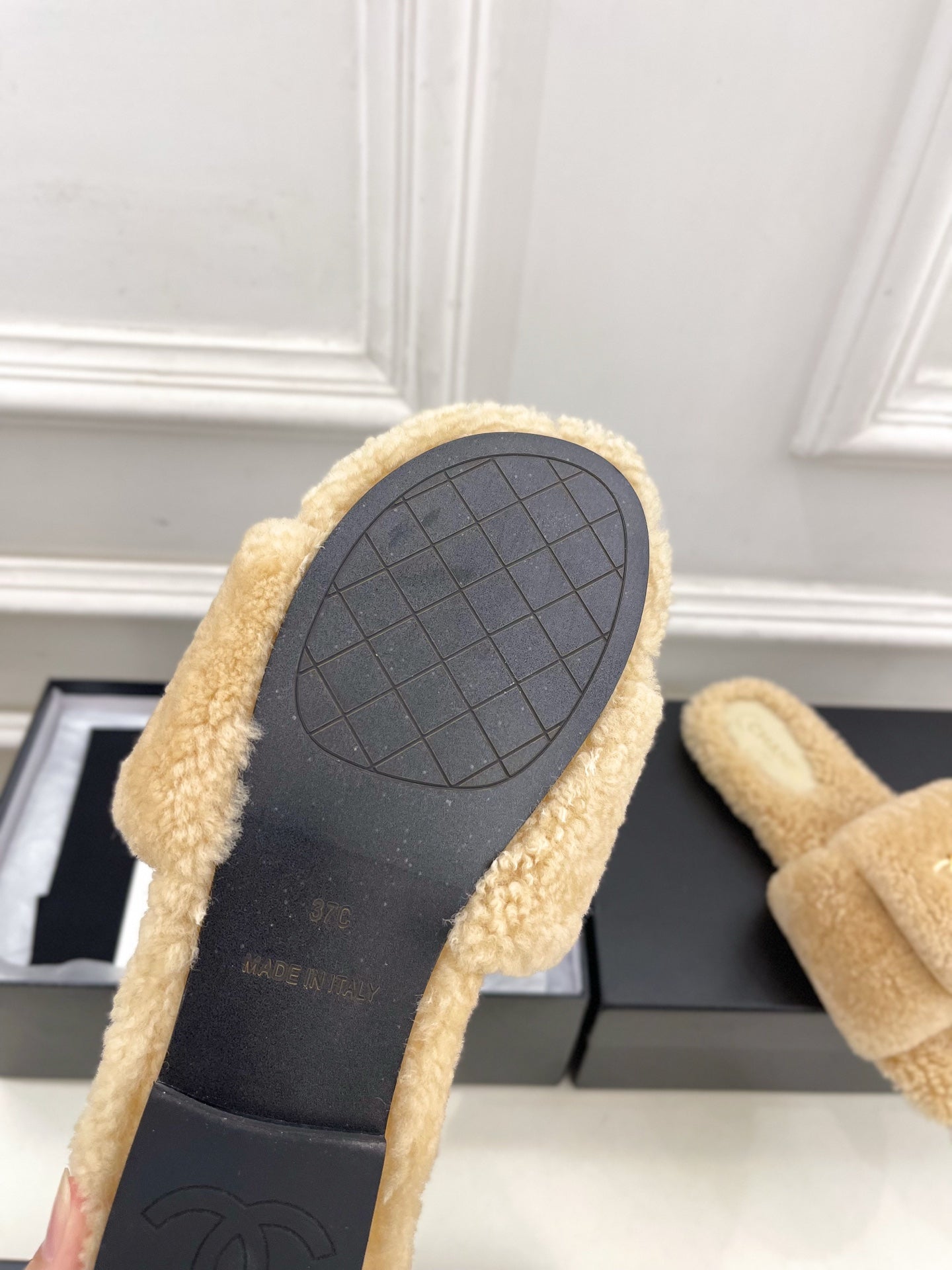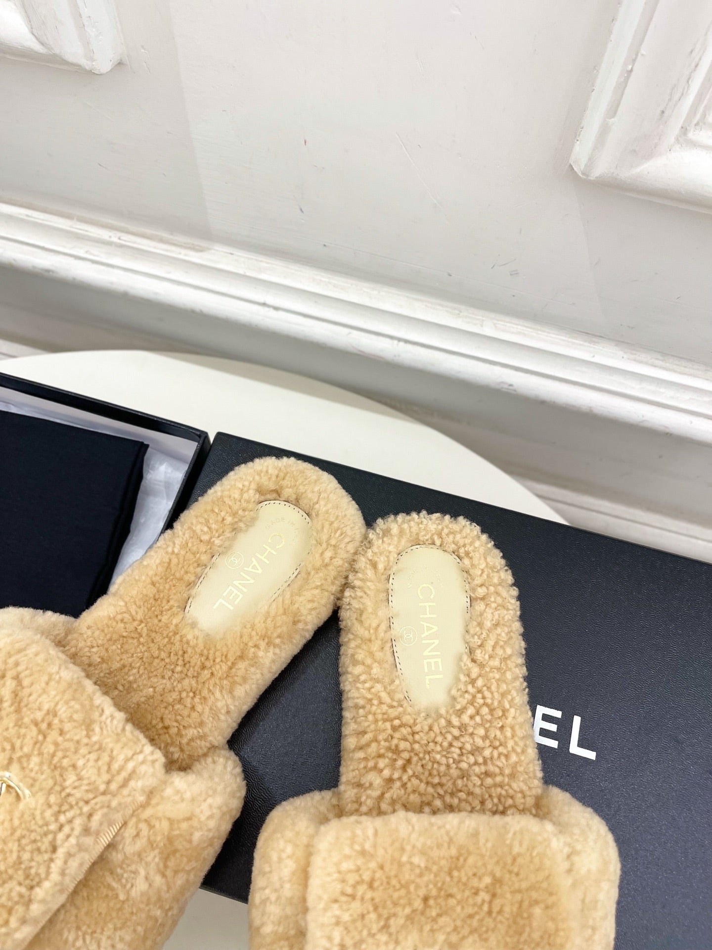 CC 25s Logo Slippers Beige Wool GHW 435268