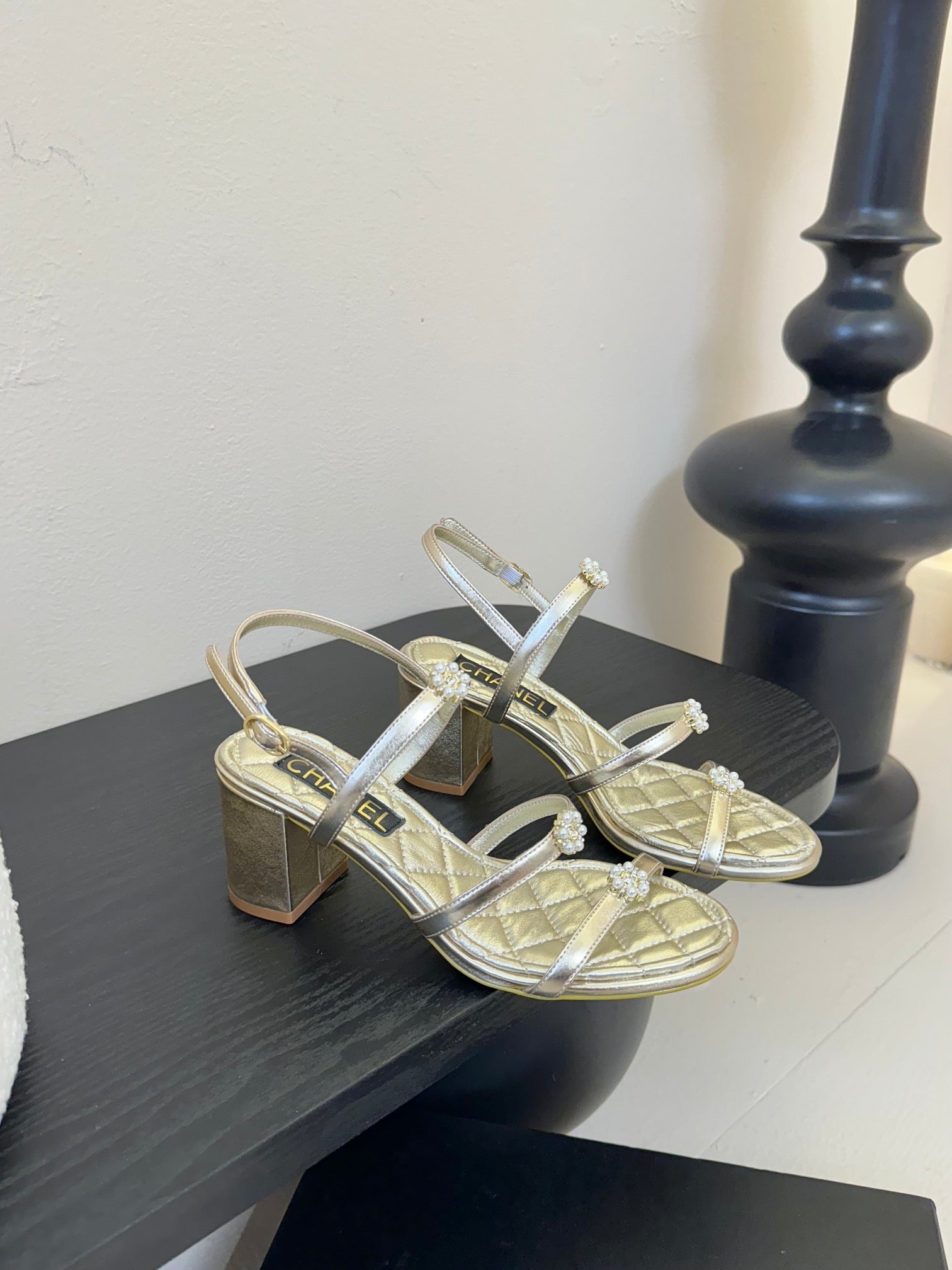 CC 25SS 3 Flowers Heel Sandals 60mm Gold Metallic Sheepskin 351433