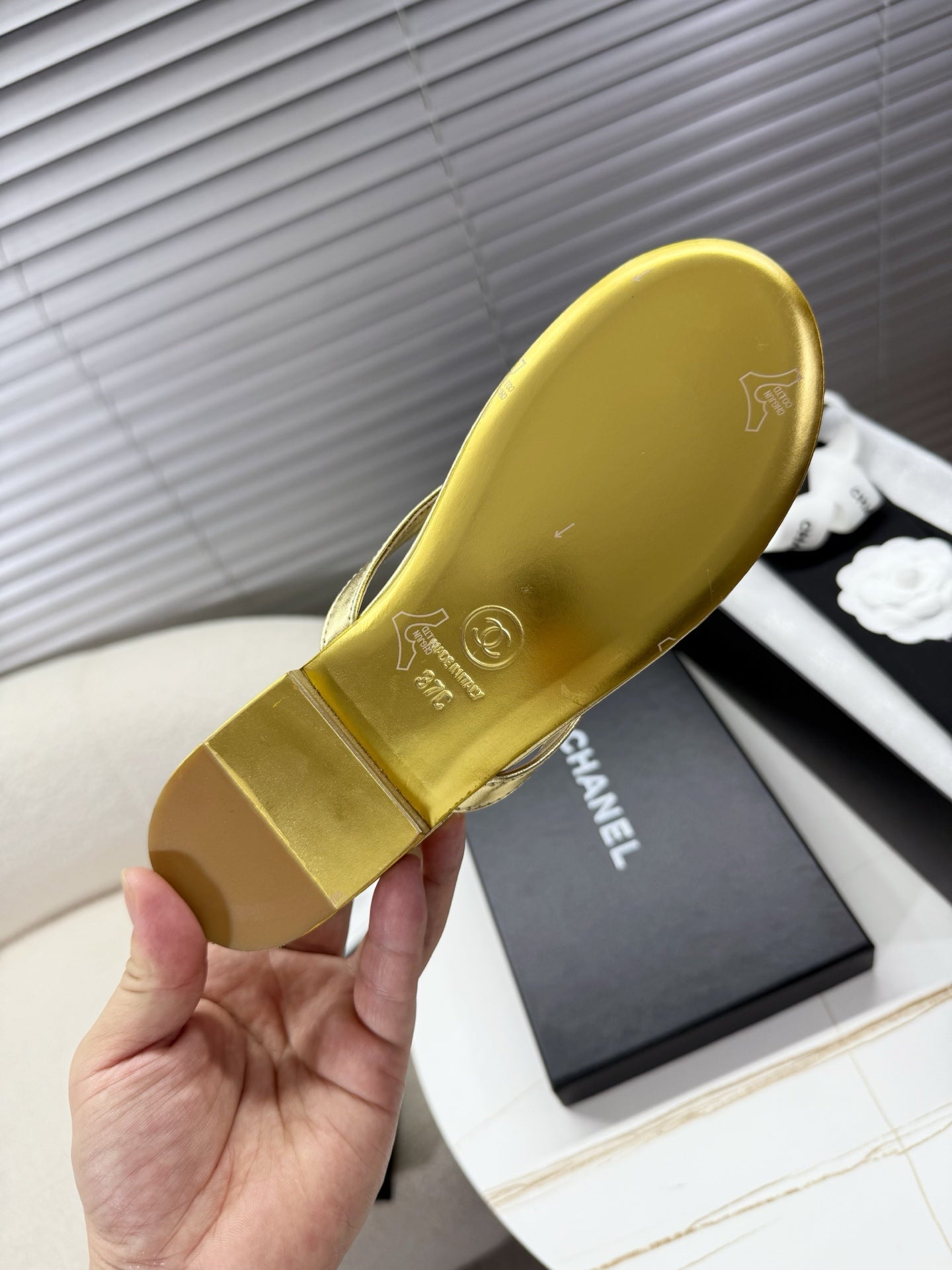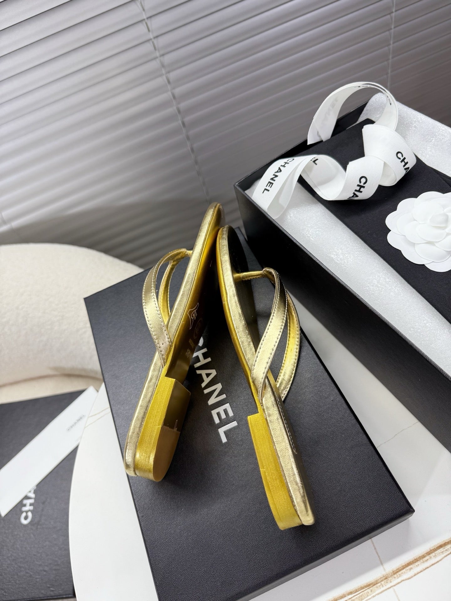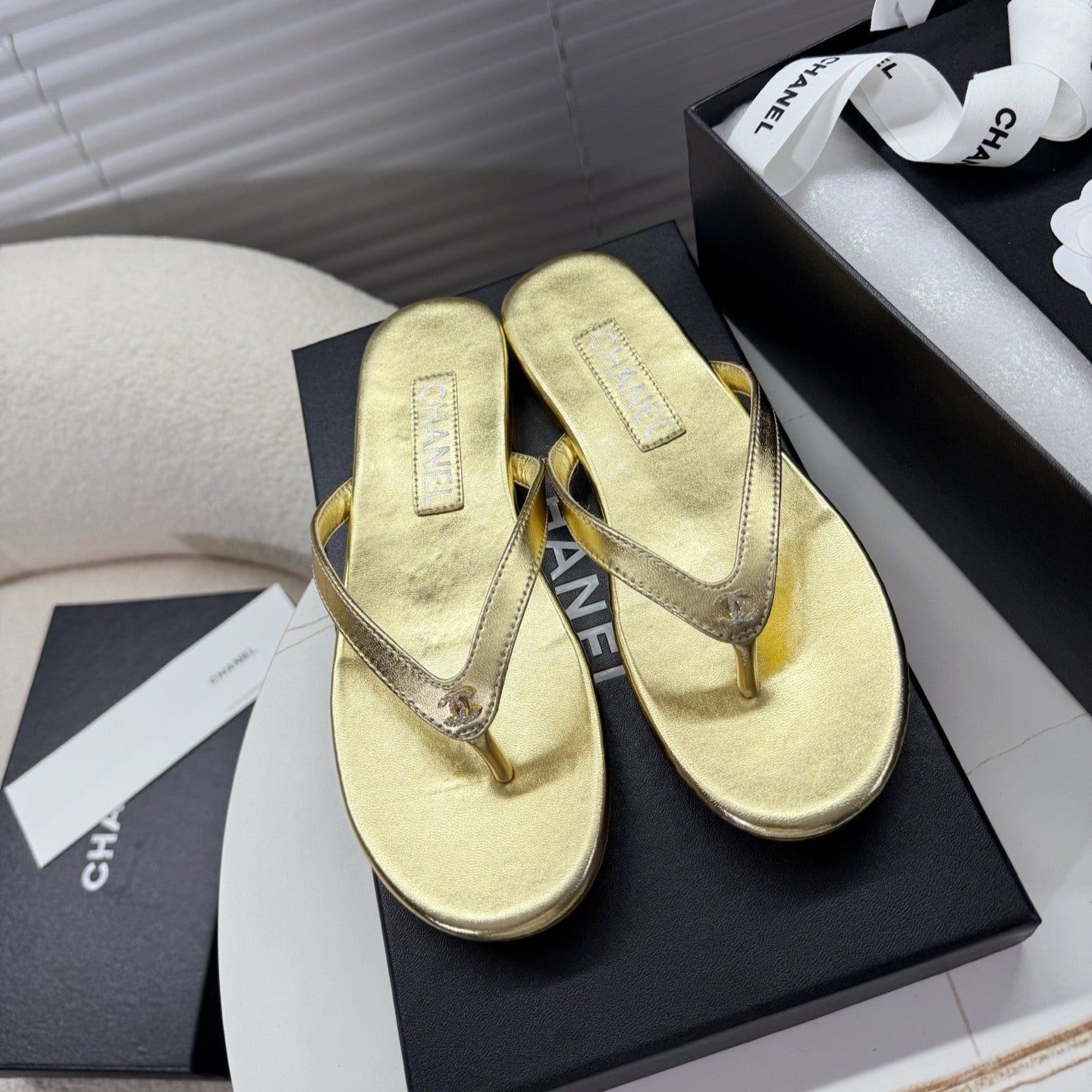 CC 25SS Thong Sandals Double C Rhinestone Gold Sheepskin 352432