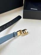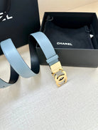 CC 30MM BELT IN STONE BLUE AND BLACK CALFSKIN WITH GOLD HARDWARE