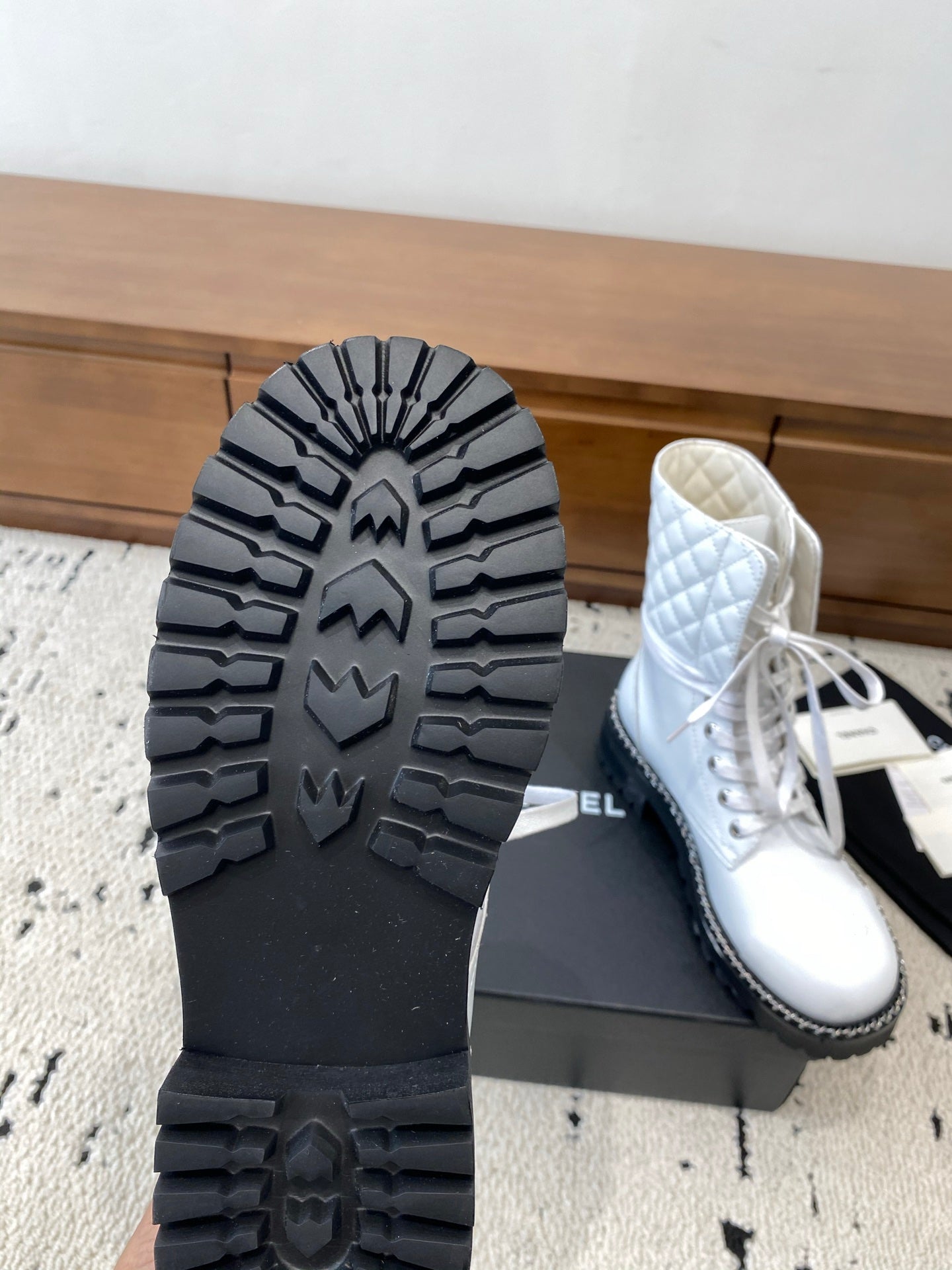 CC Ankle Boots Flat Quited White Calfskin 529287