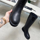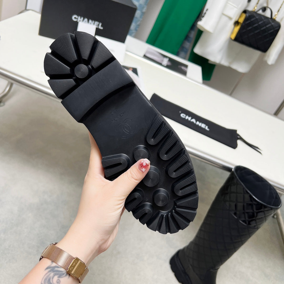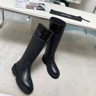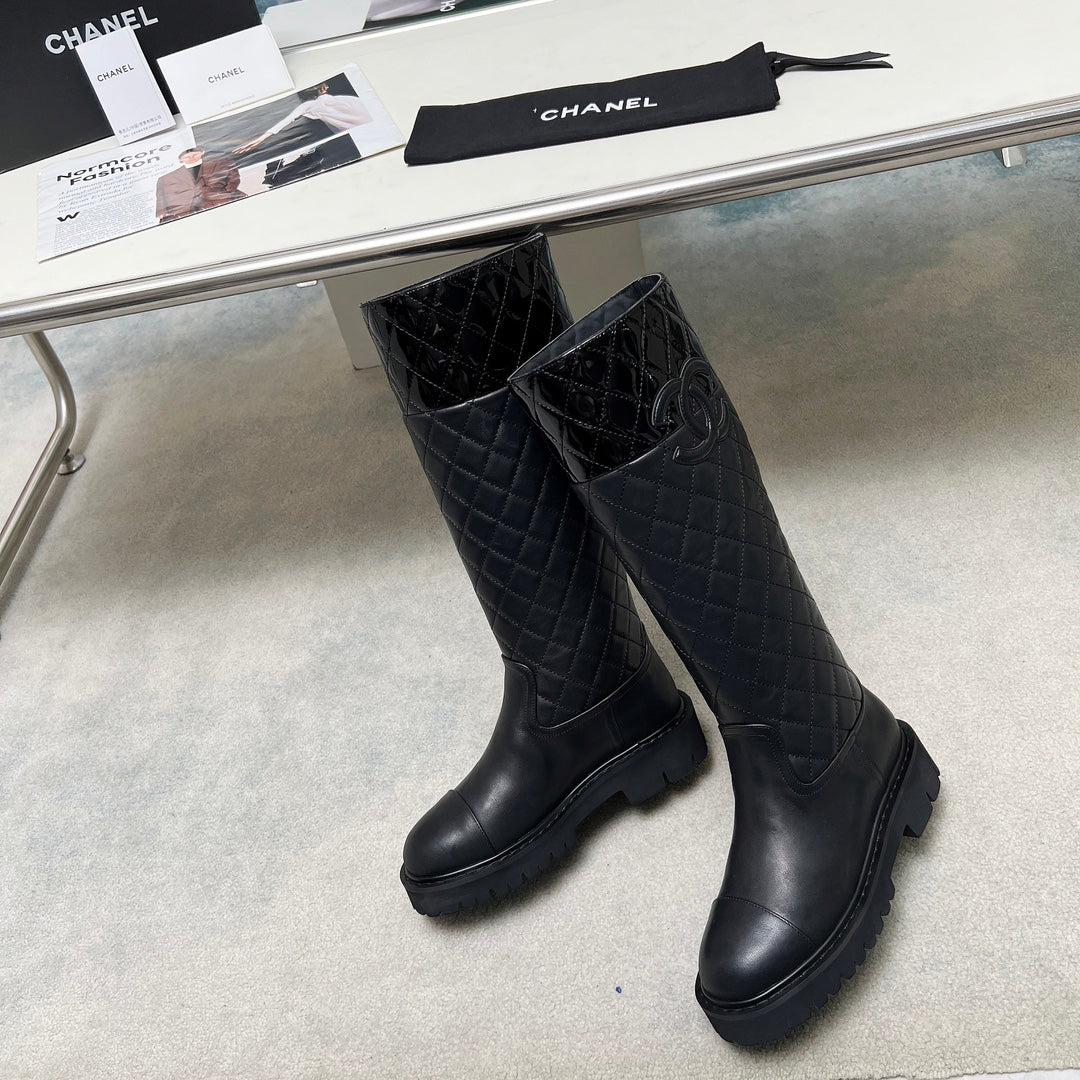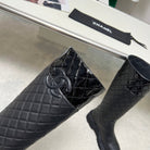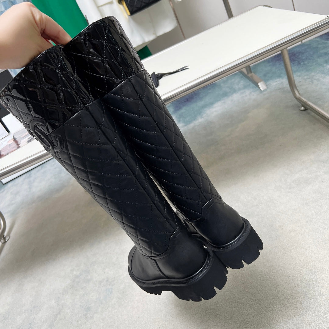 CC Classic Knee High Boots Quited Black Sheepskin Patent Leather 529337