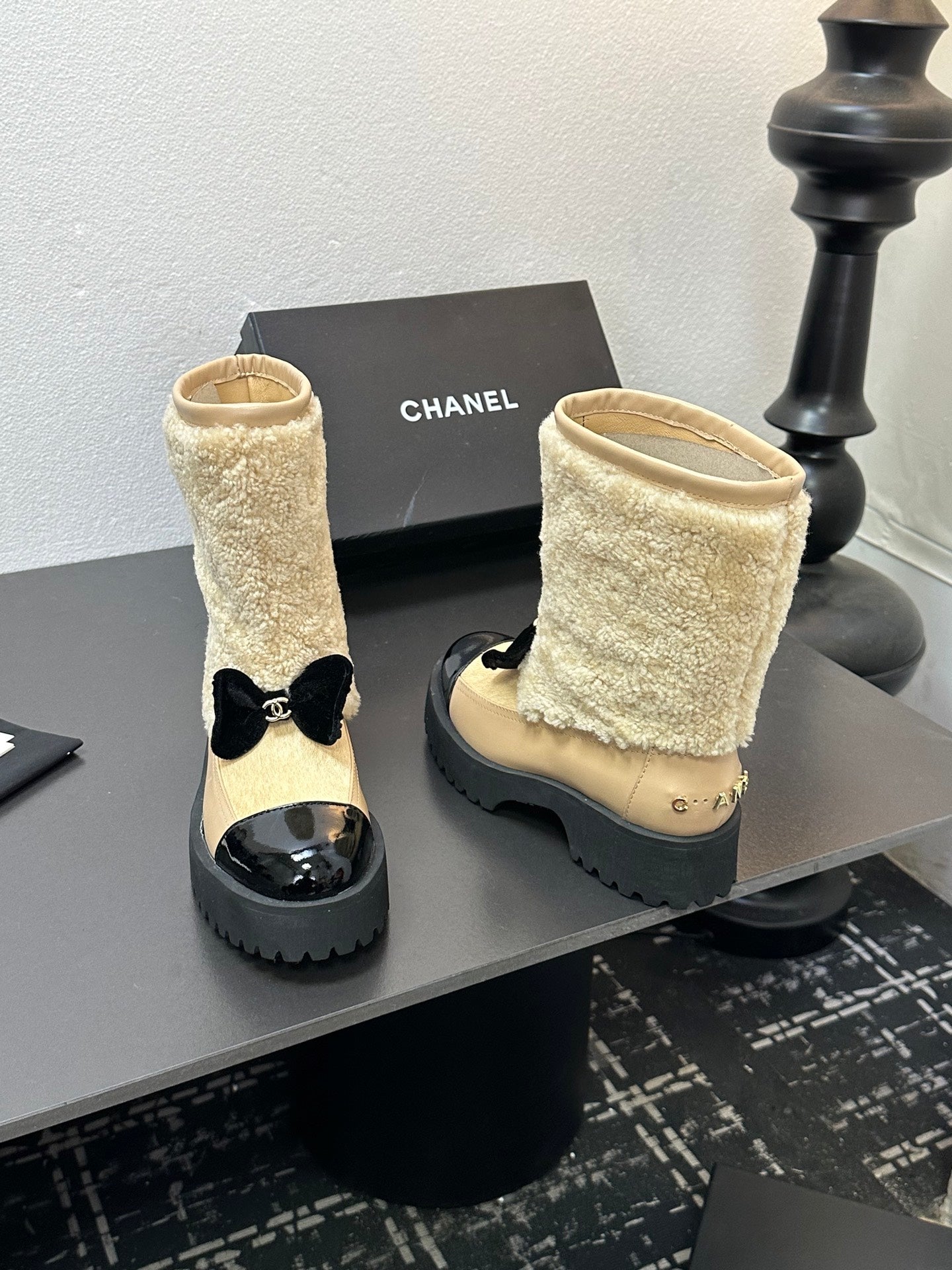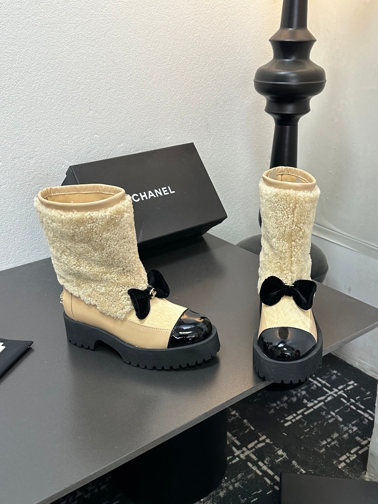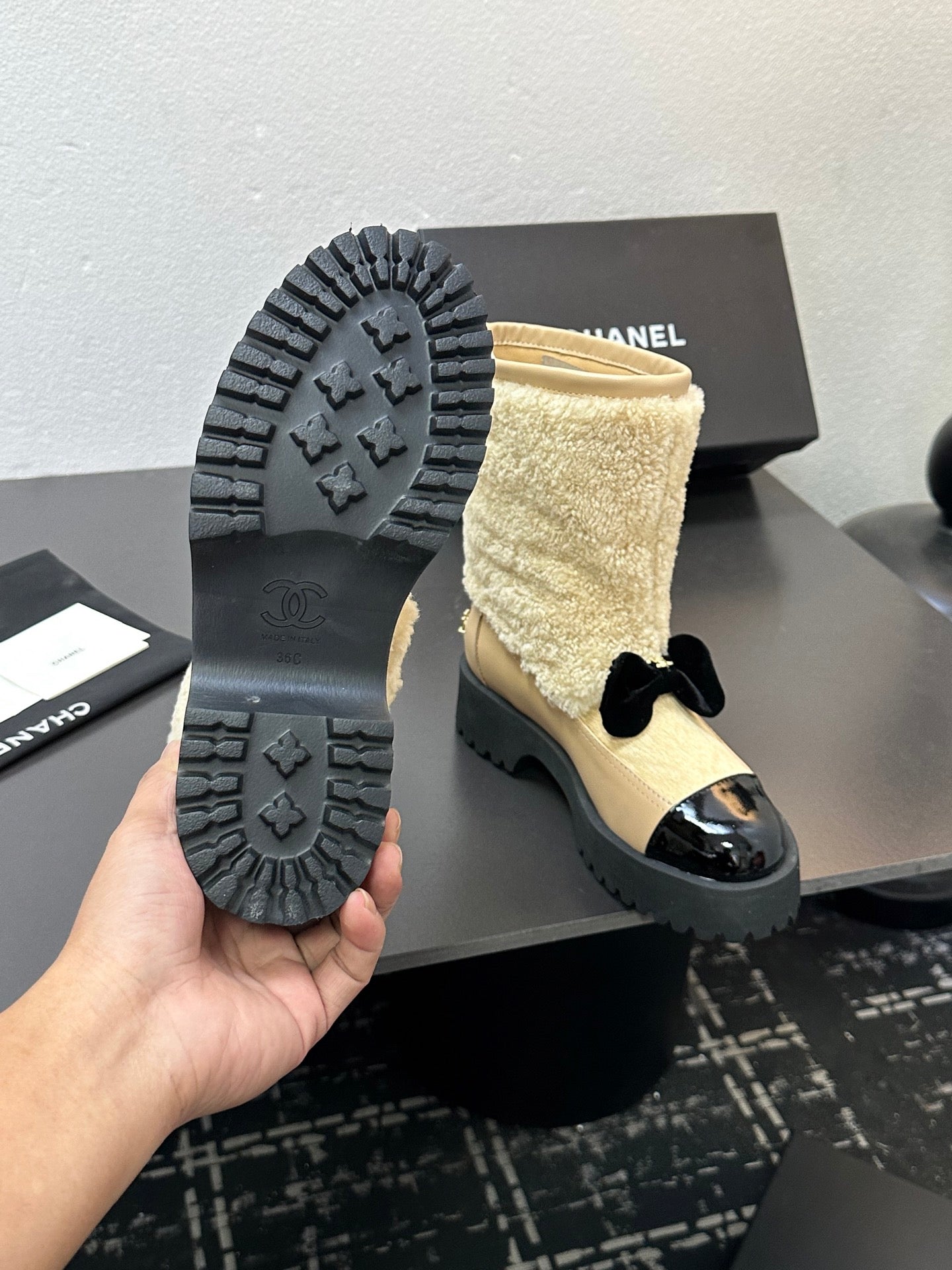 CC Coco Neige 2025/26 Low-cut Boots Beige Shearling Lambskin Patent Leather 529342