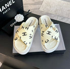 cc cross sandal mule cream lambskin multi logo