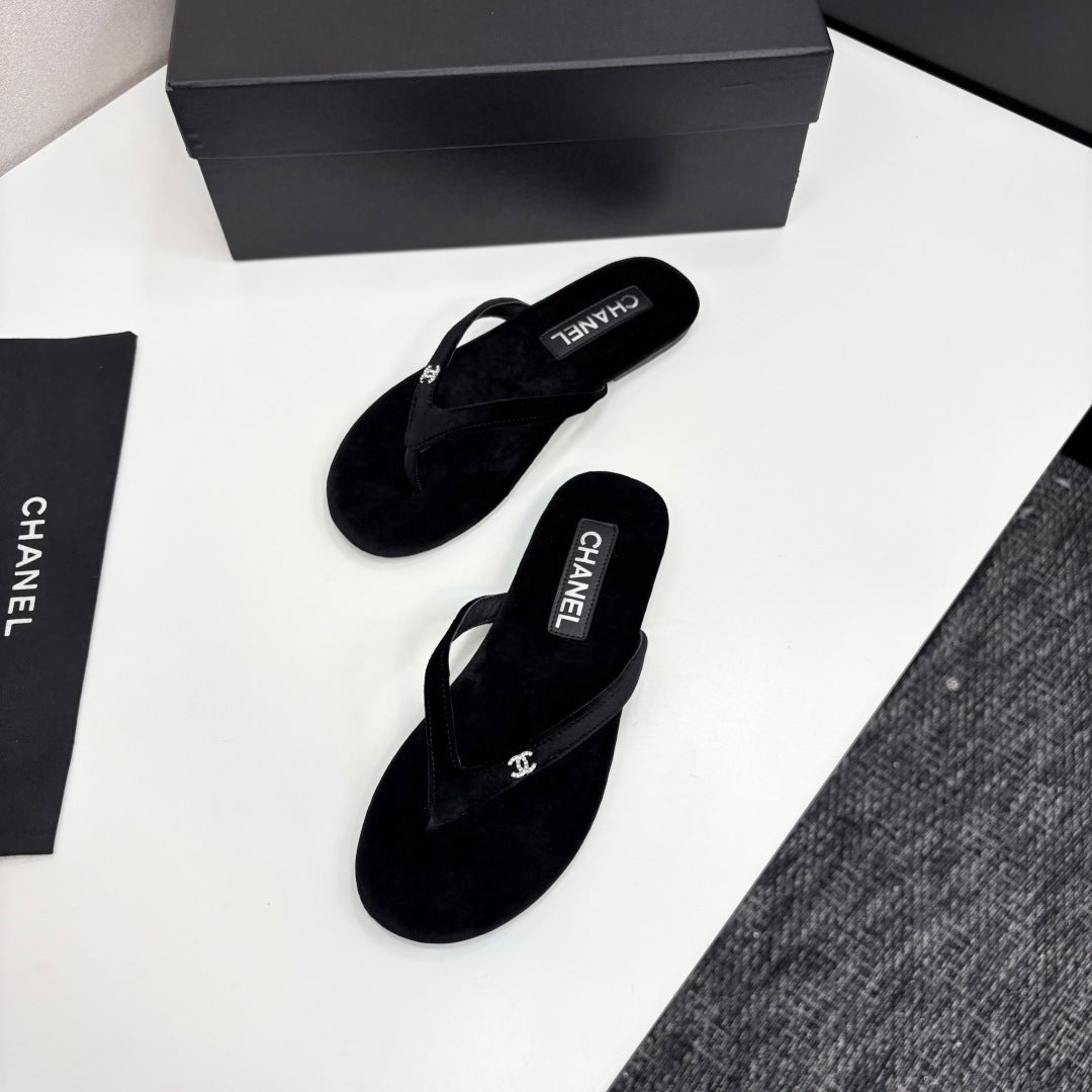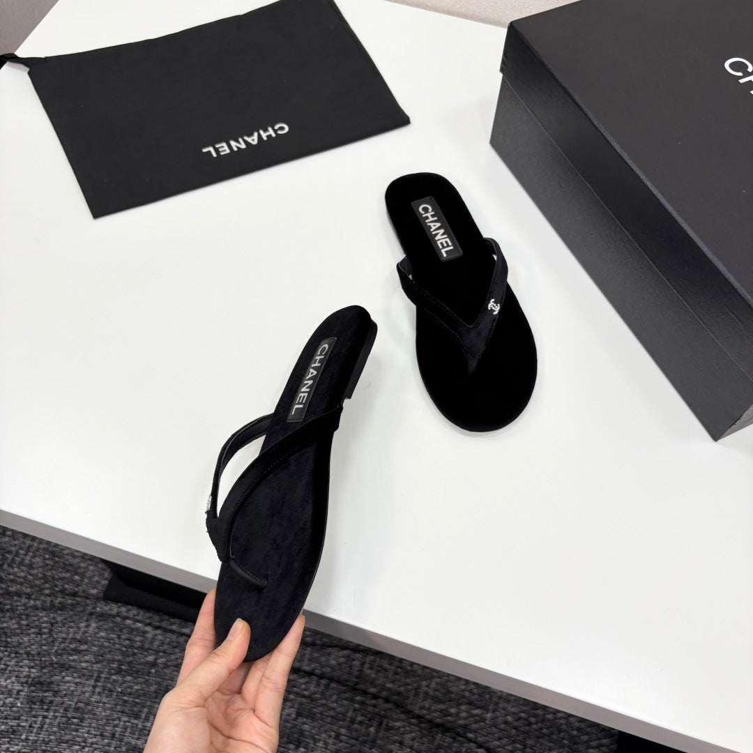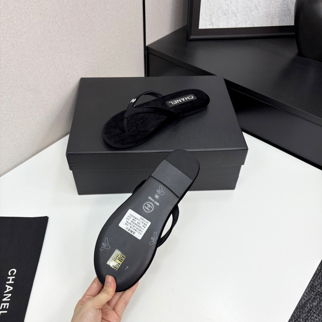 CC Crystal Logo Thong Sandal Black Velvet 352478