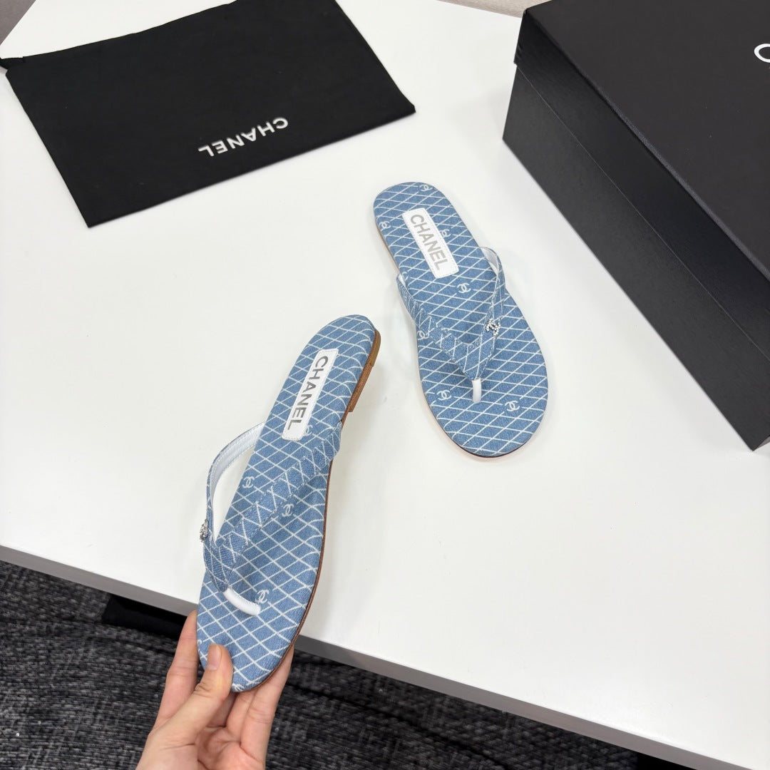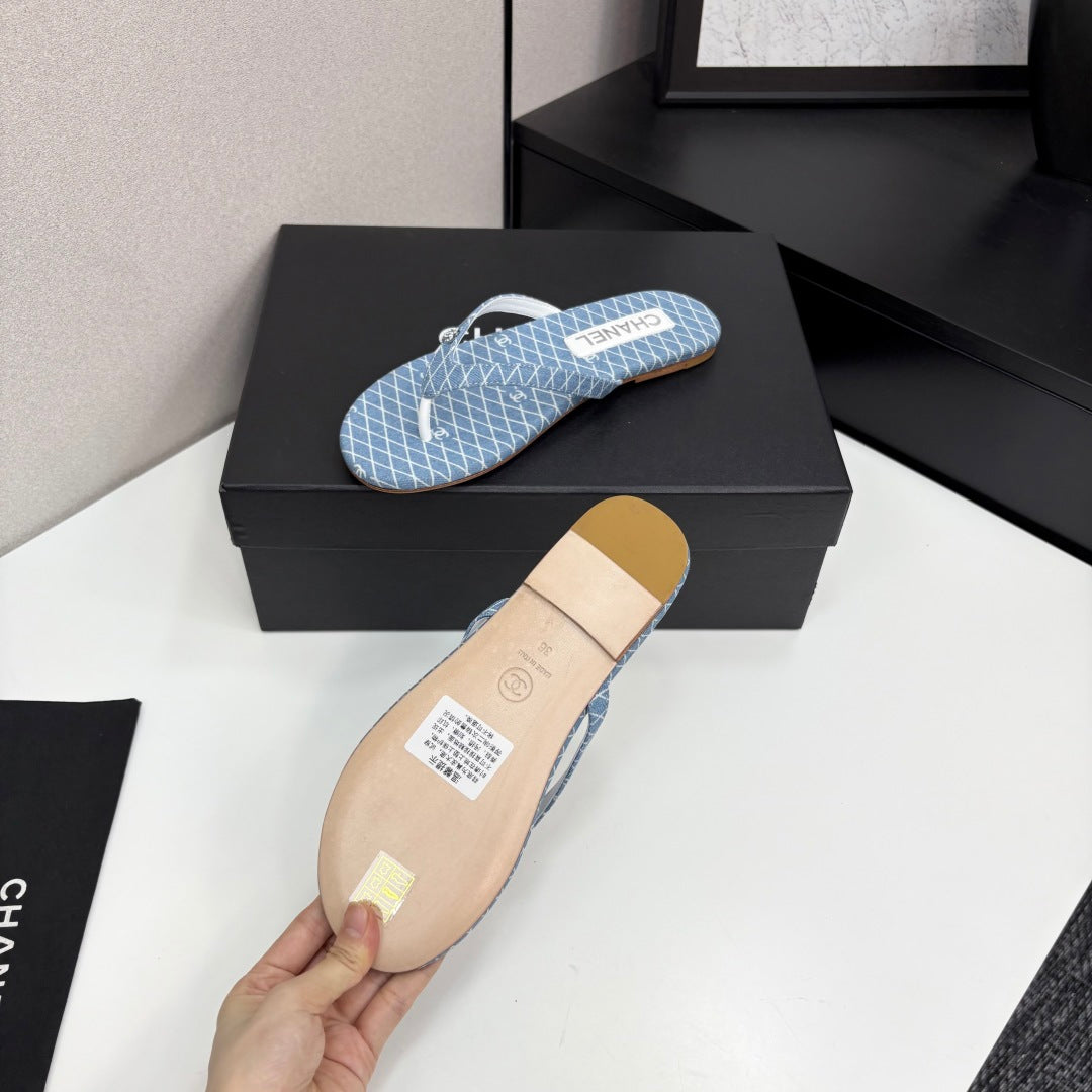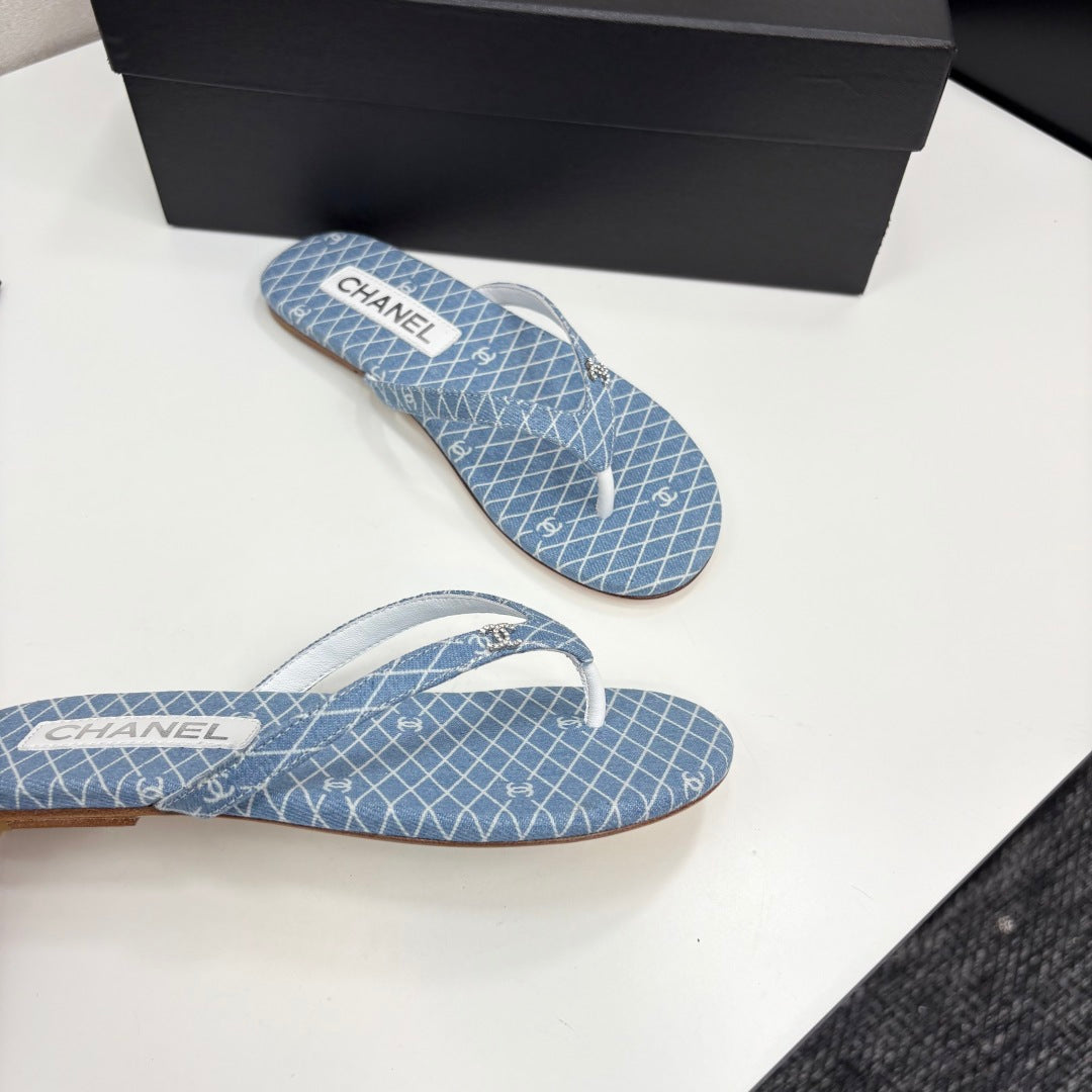 CC Crystal Logo Thong Sandal Light Blue Fabric And Sheepskin352484