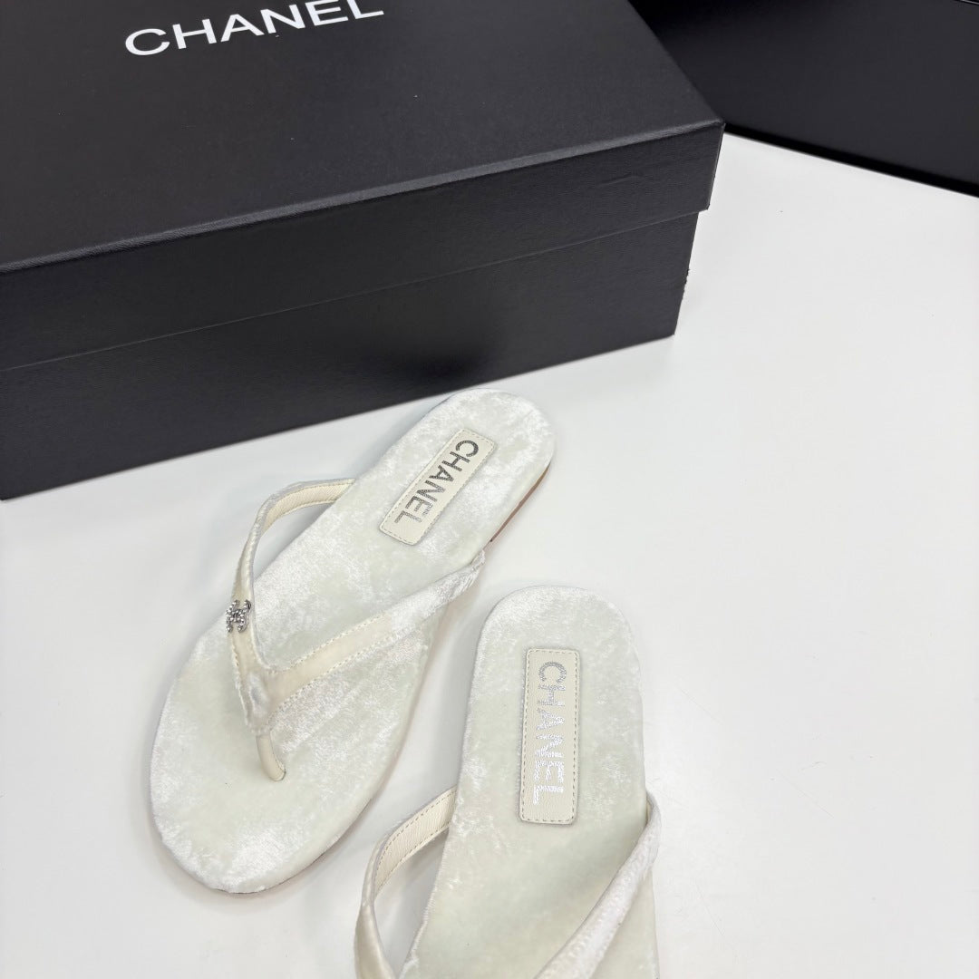 CC Crystal Logo Thong Sandal White Velvet 352477