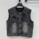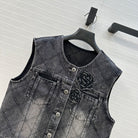 CC Flower Denim Vest Black Cotton