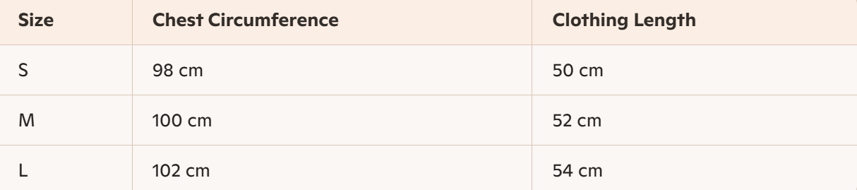 • Size: S, M, L