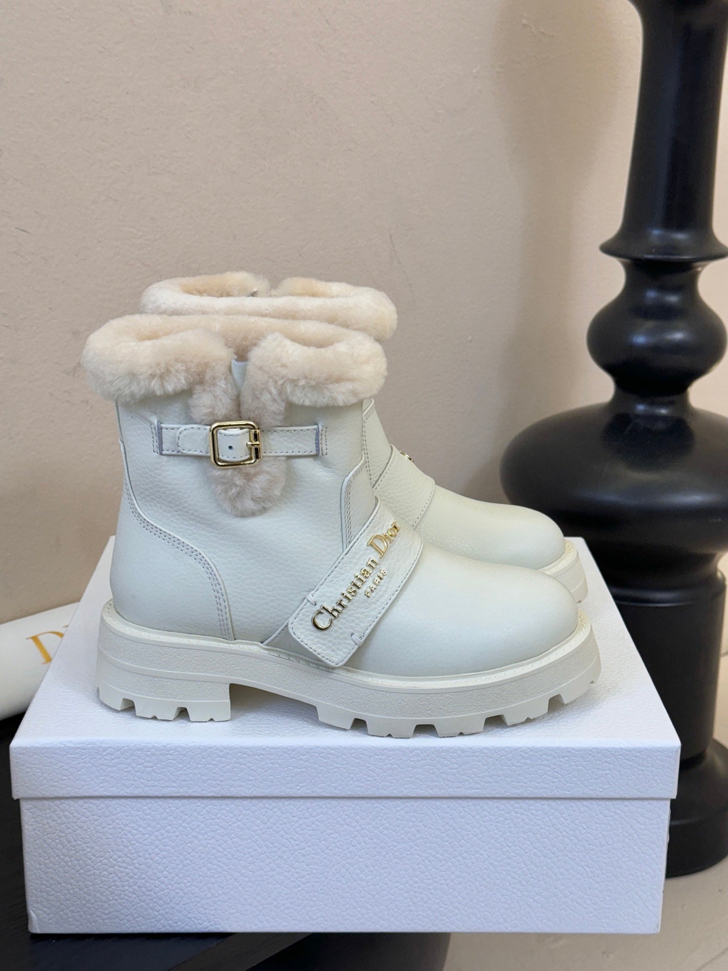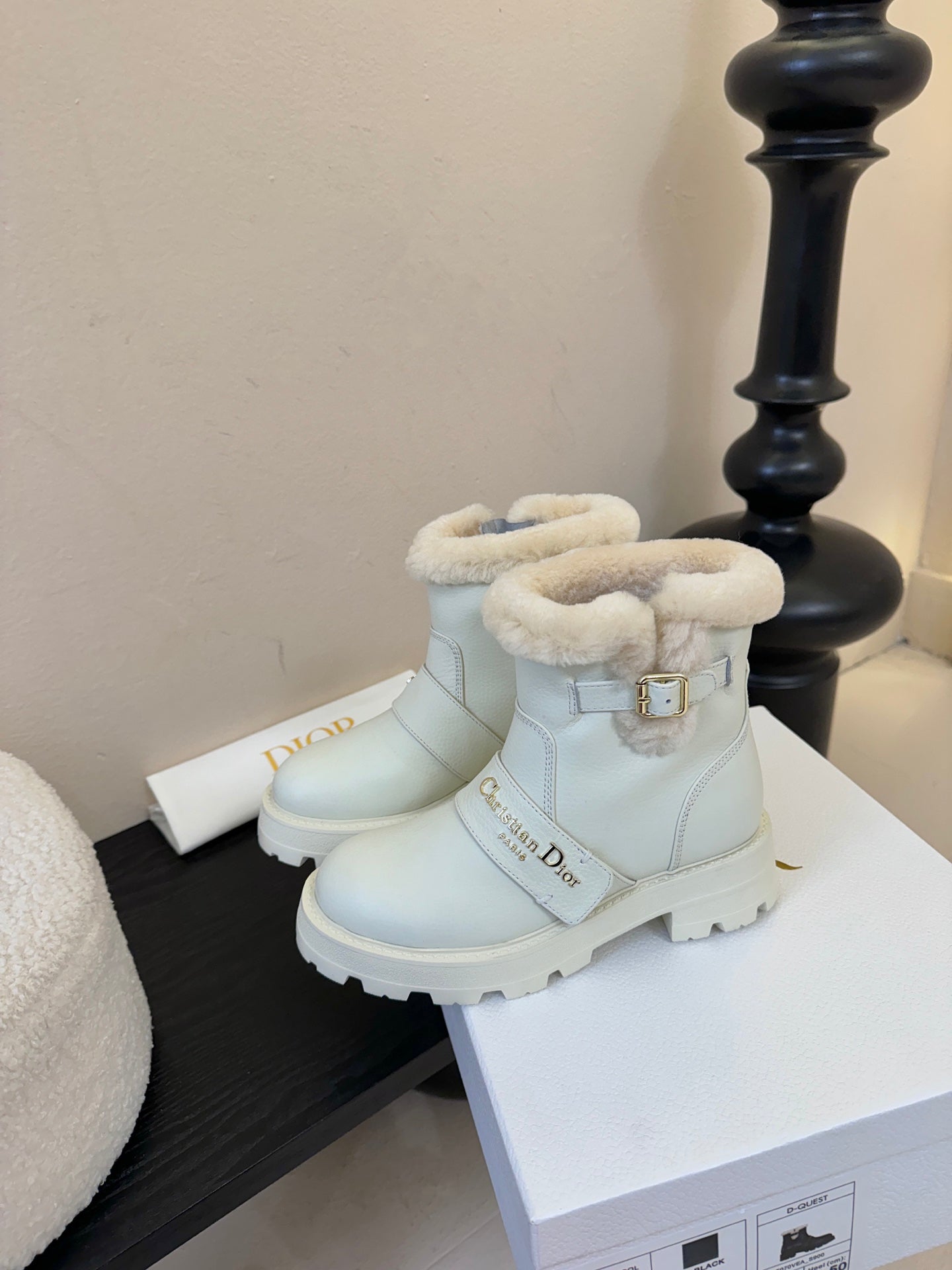 CD Alps D-Quest Ankle Boot White Grained Calfskin Shearling 530609