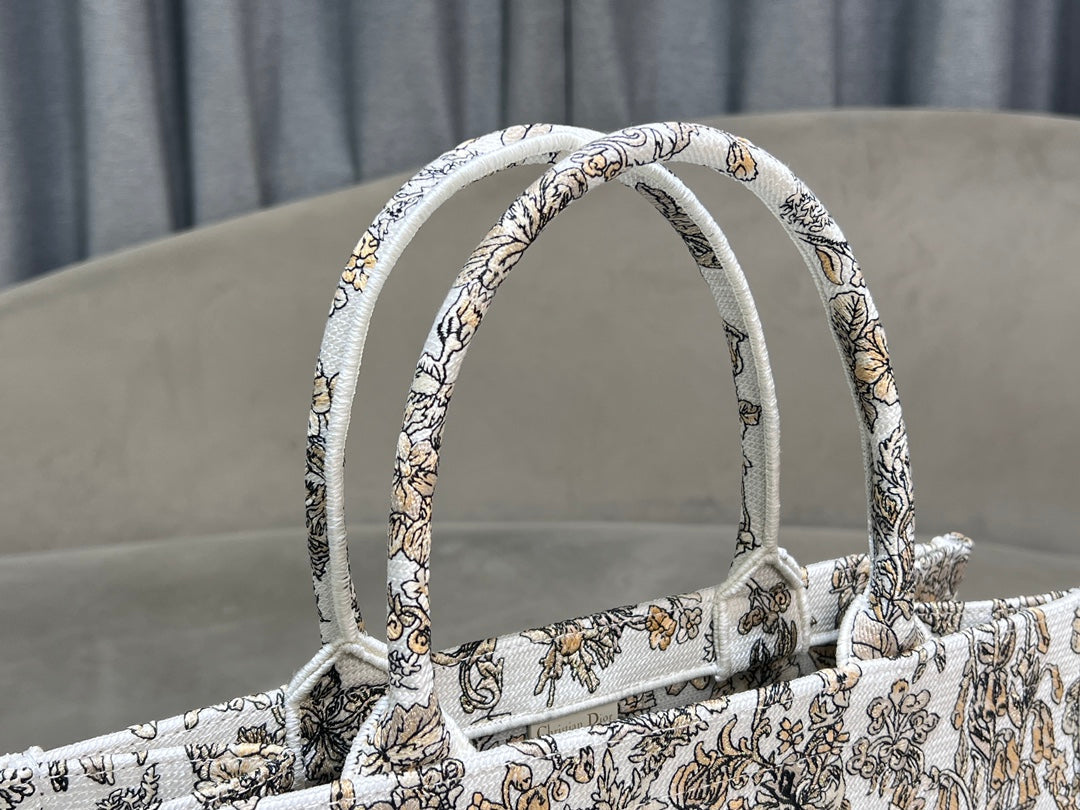 CD Book Tote 36.5 Beige White Canvas