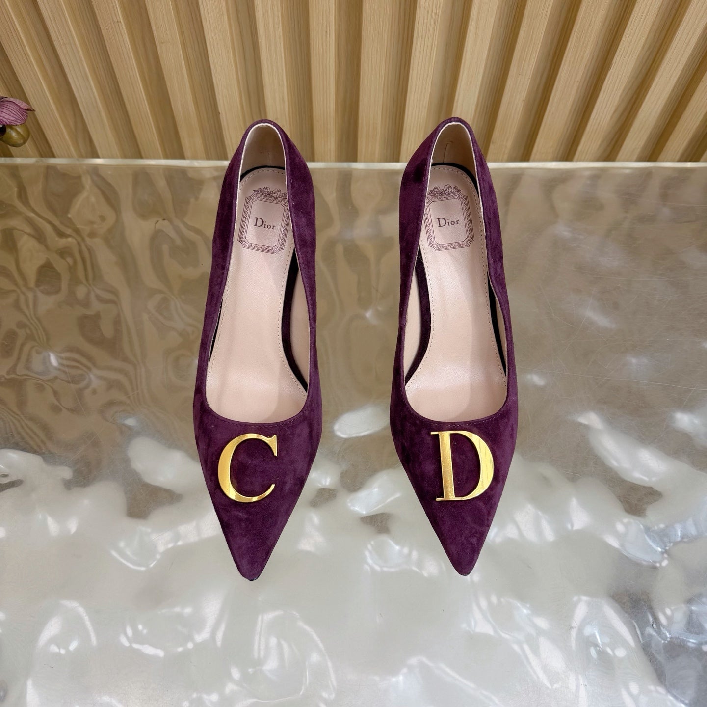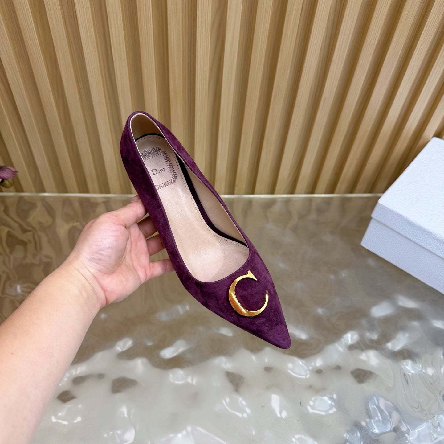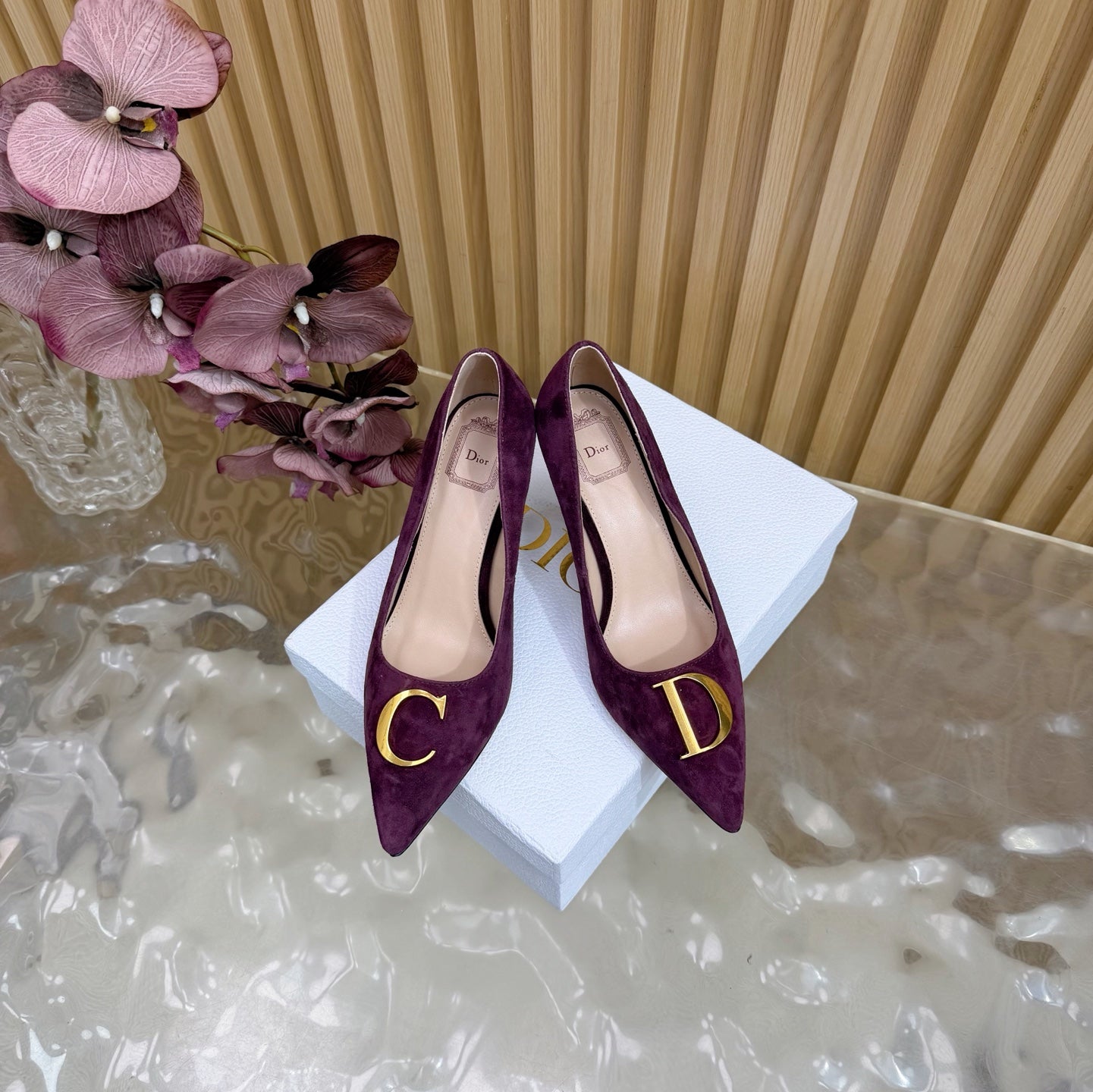 CD Buckle High-Heeled Elegant Shoes 85mm Burgundy Suede 537716