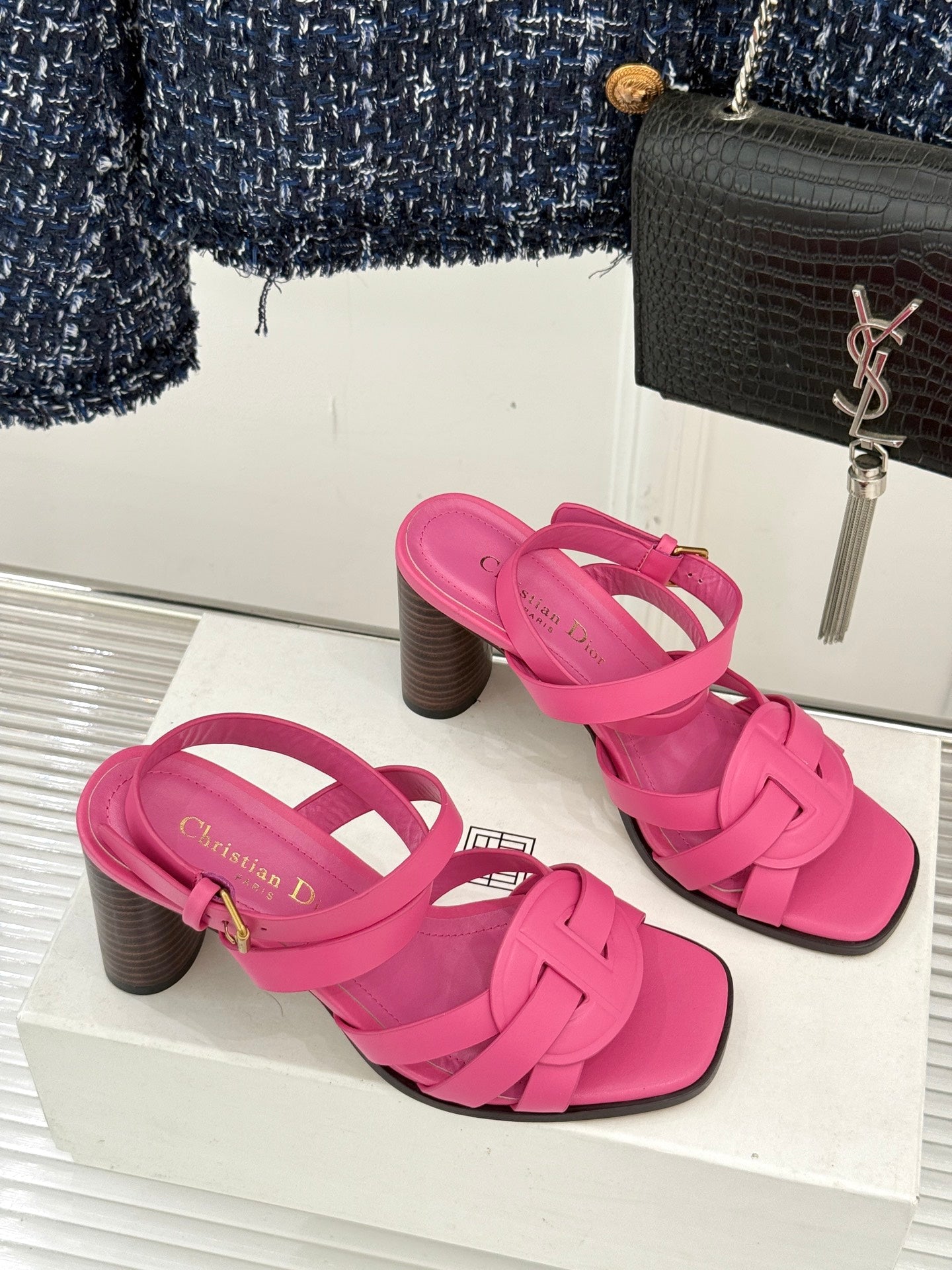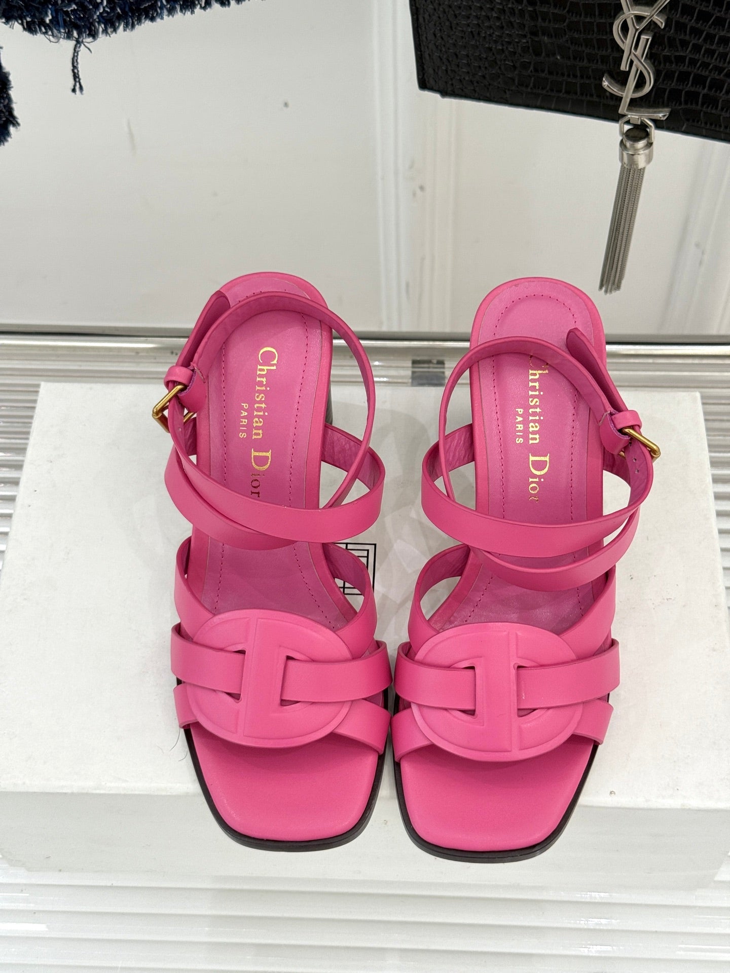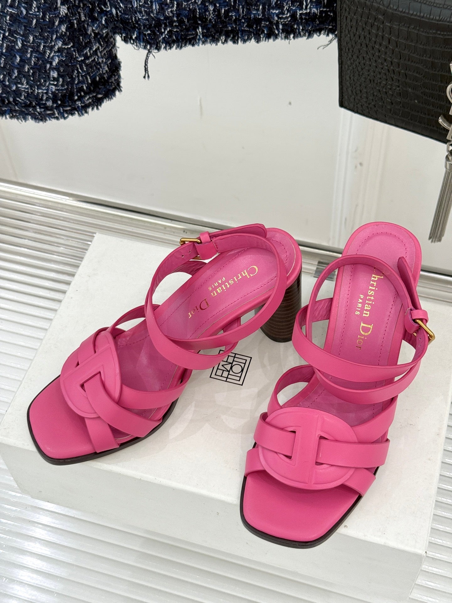 CD D-Club Heeled Sandal 80mm Pink Calfskin 473832