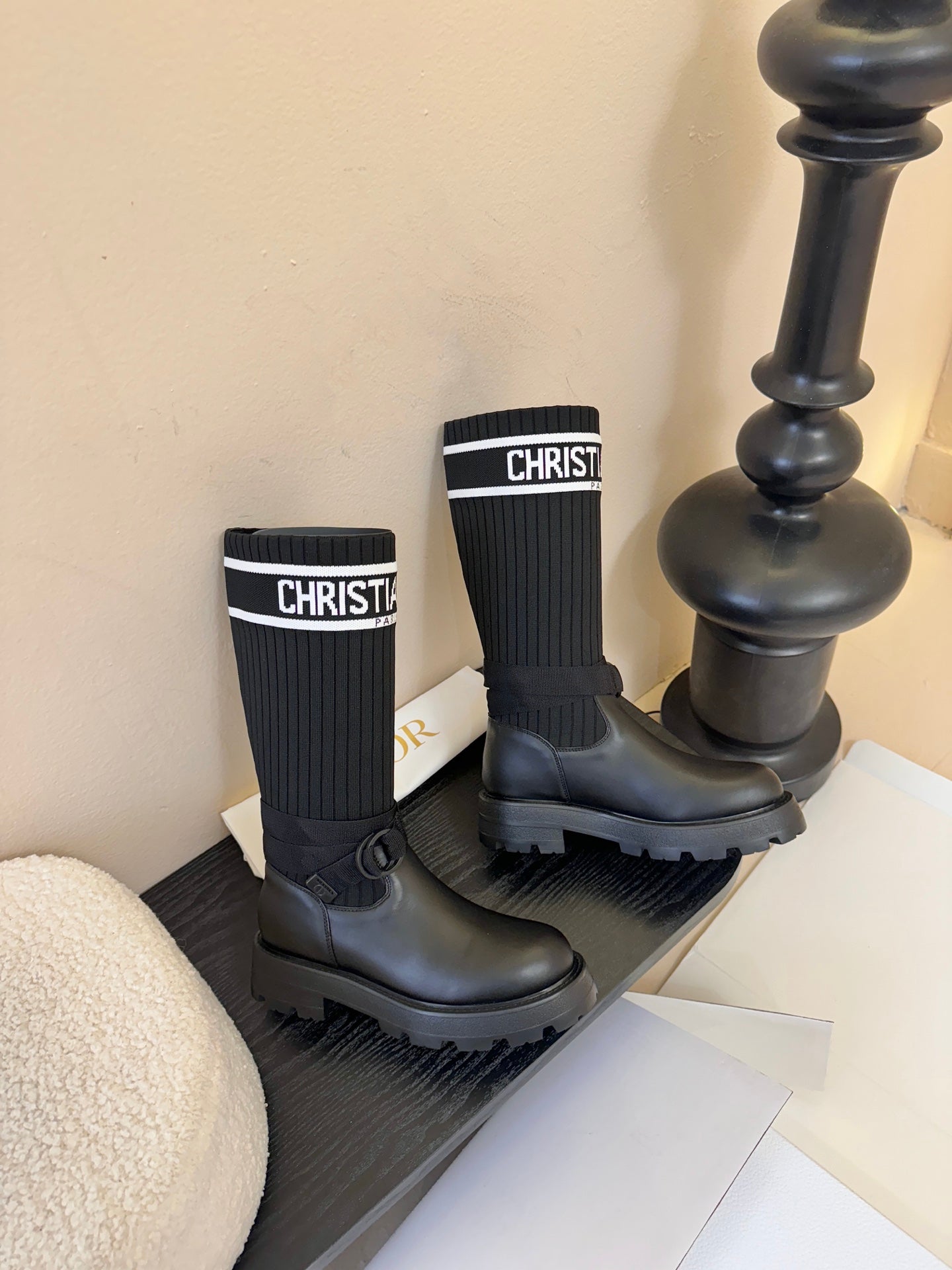 CD D-Major Boot Black White Technical Knit Calfskin 530618