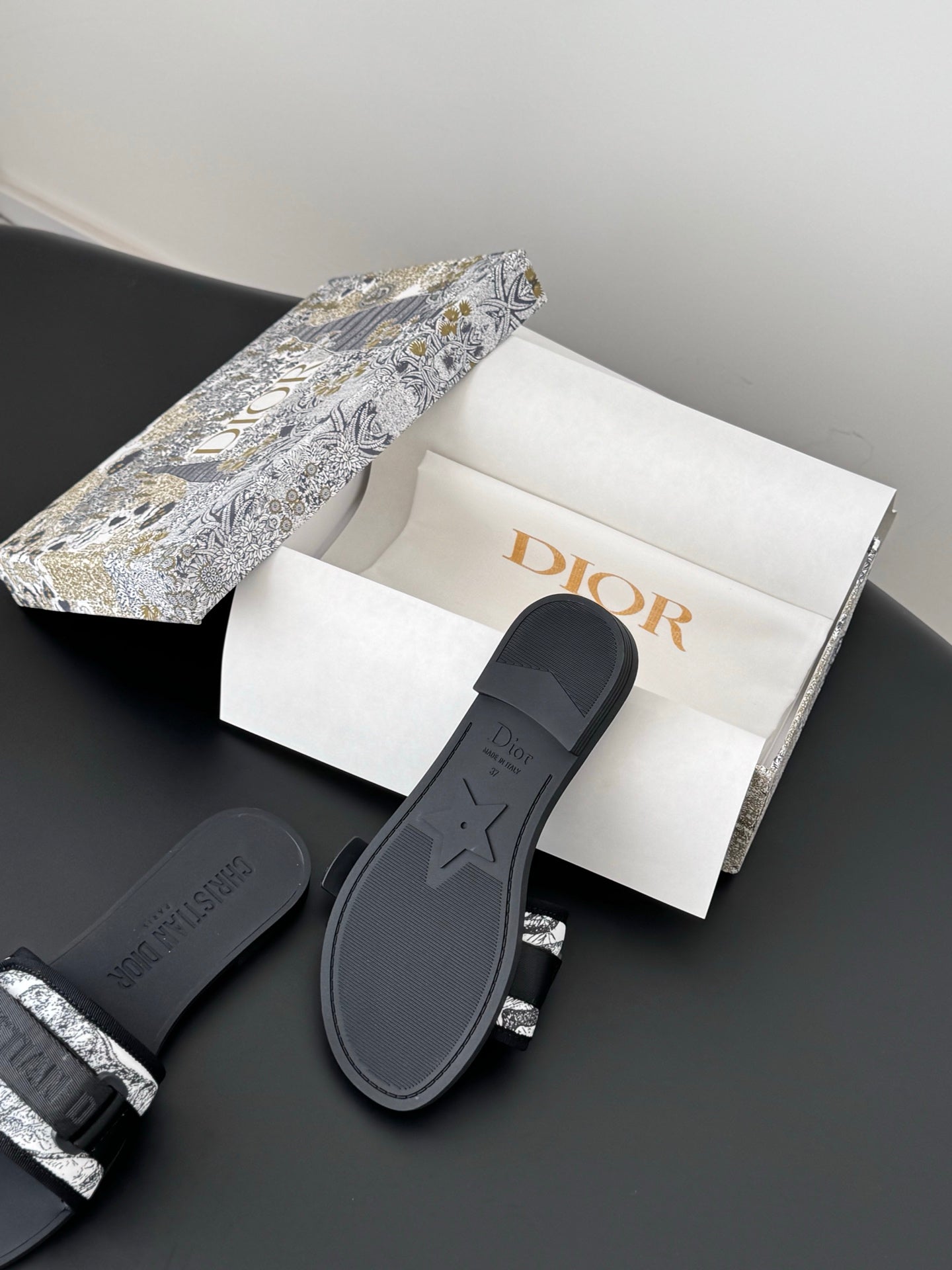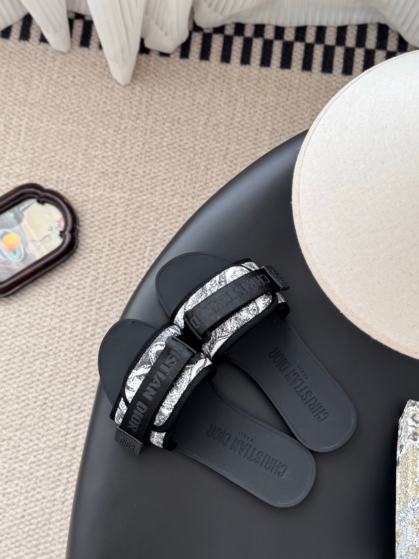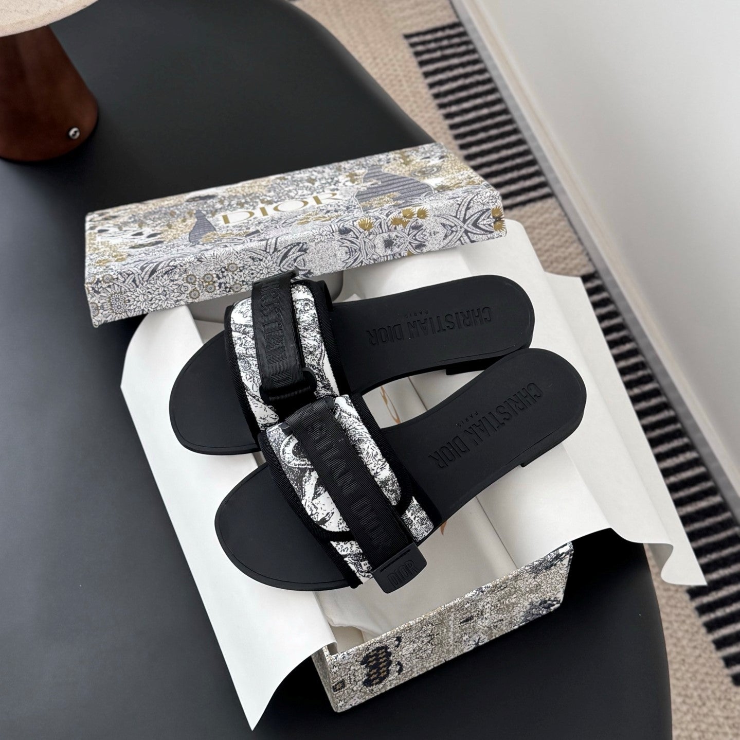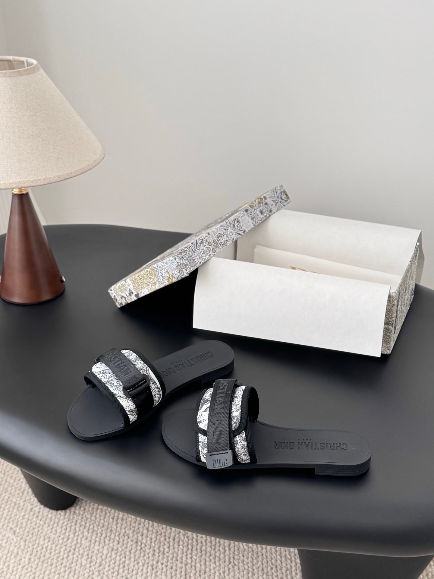 CD D-Wander Slide Black Dior Oblique Printed Technical Fabric 540691