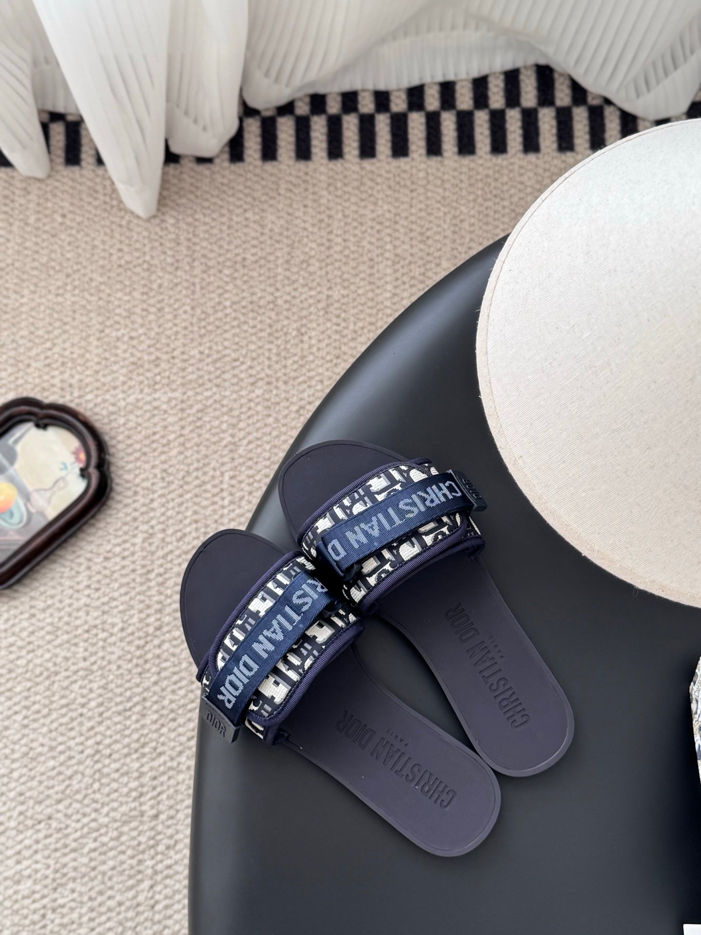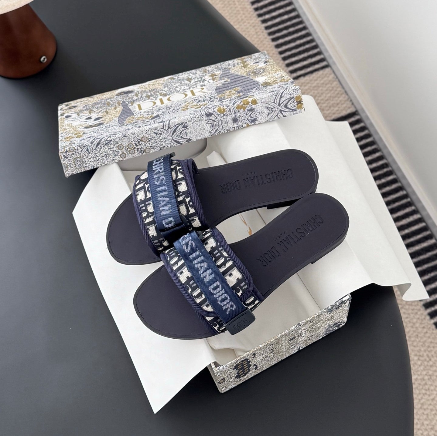 CD D-Wander Slide Deep Blue Dior Oblique Printed Technical Fabric
