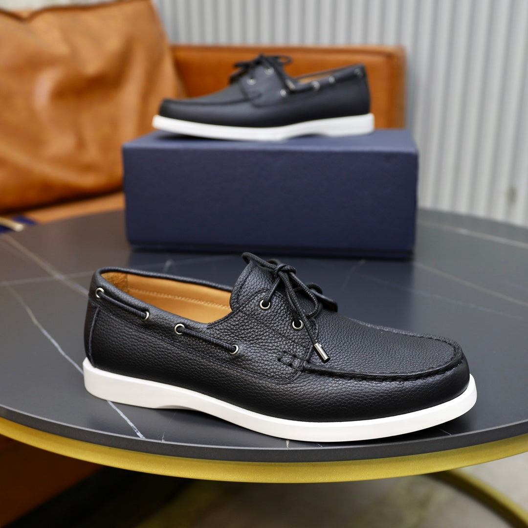 CD GRANVILLE BOAT SHOE BLACK GRAINED CALFSKIN