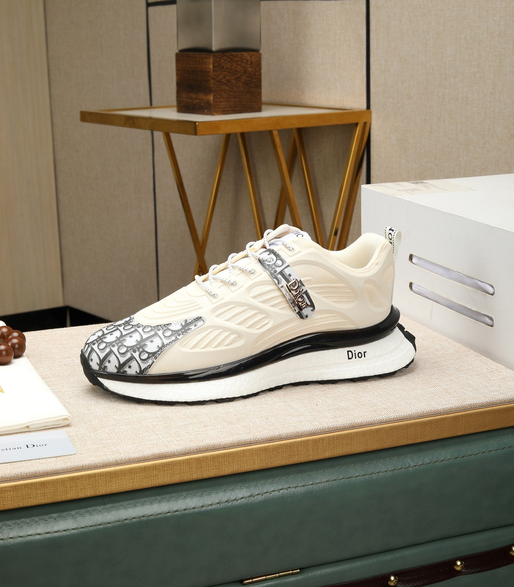 CD RUNNER SNEAKER CREAM AND BLACK CALFSKIN
