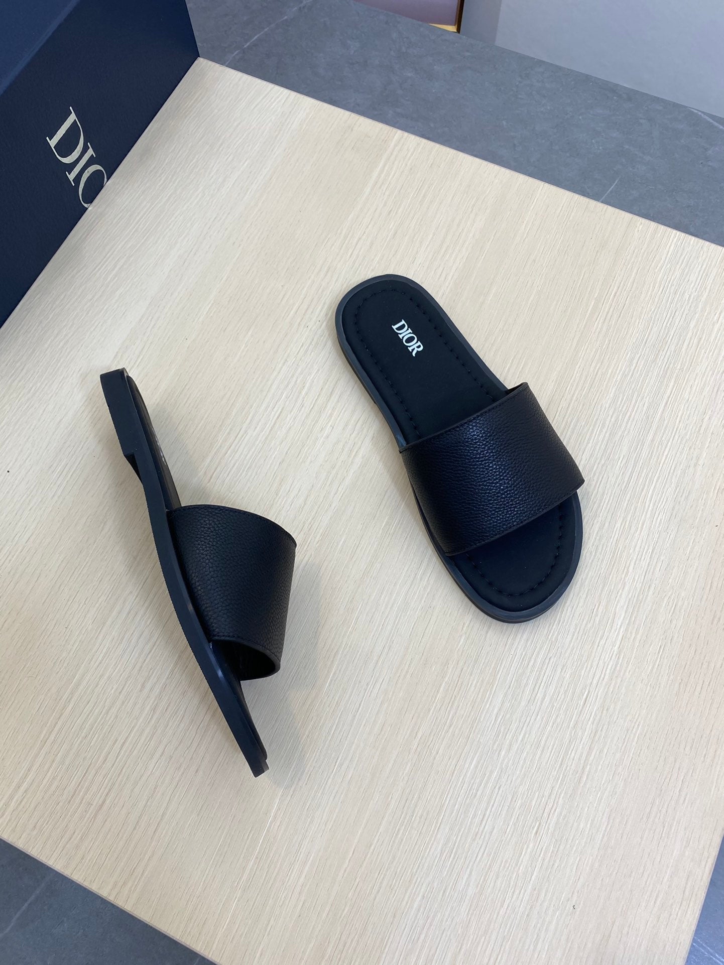 CD SLIDE ALIDAS SLIPPER BLACK GRAINED CALFSKIN
