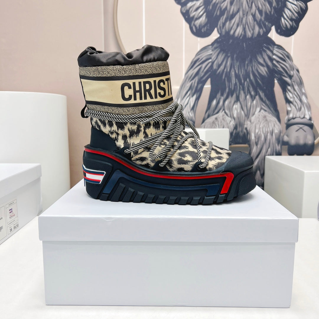 CD Snow Ankle Boots Black Beige Cowhide Nylon Fabric 539662