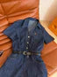 CELINE 25 ARC DE TRIOMPHE LOGO EMBROIDERED DENIM DRESS BLUE COTTON